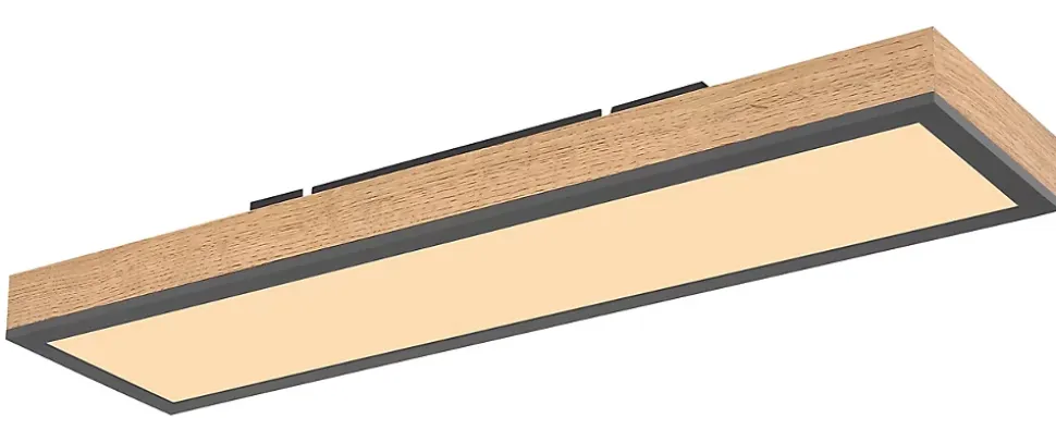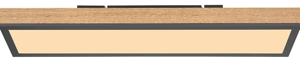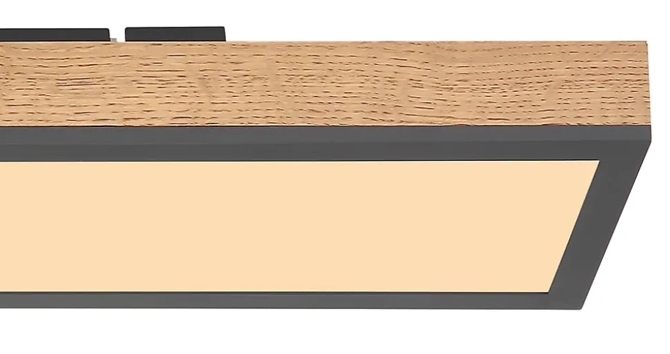 Ce magnifique plafonnier de la série Doro se distingue par son bel aspect bois et sa forme simple. Le plafonnier rectangulaire de 60cm de long dispose d’une ampoule LED intégrée qui brille agréablement d’une lumière blanche chaude (3000 Kelvin). Avec la combinaison de couleurs du graphite et de l’aspect bois, vous faites une belle image globale.