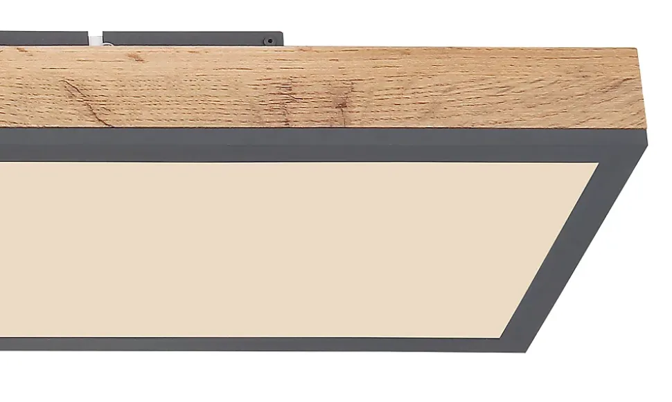Plafonnier aluminium graphite, MDF décor bois, Acrylique opale, Dimmable, Plusieurs intensités à gérer par un interrupteur mural, couleur fixe, Fonction de mémoire, Veilleuse, Timer, Télécommande, Batterie incluse 2x AAA, LxPxH: 800x200x78mm, incl. LED 24W 230V, 100-2500lm Source, 60-1500lm Output, CCT 3000-6500K