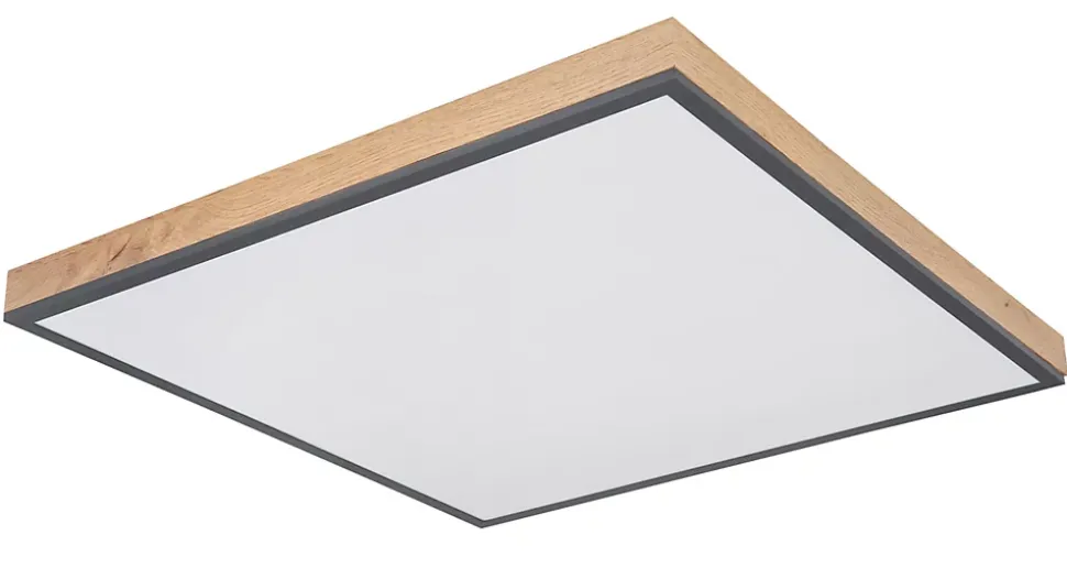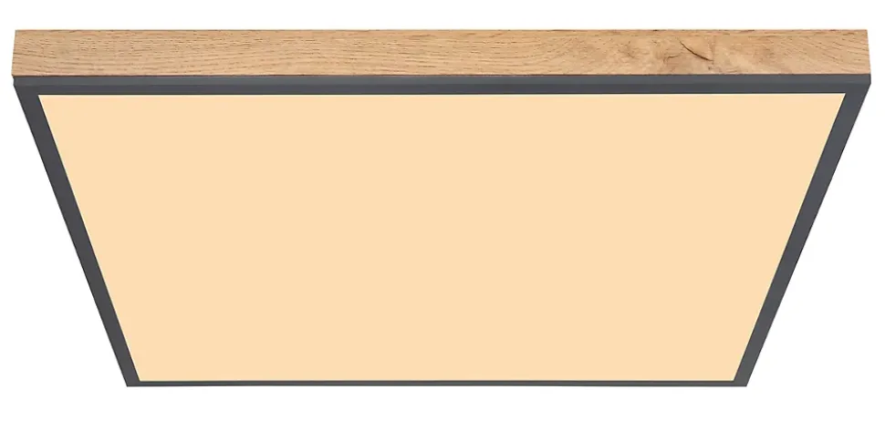 Plafonnier aluminium graphite, MDF décor bois, Acrylique opale, LxPxH: 590x590x65mm, incl. LED 36W 229V, 3800lm Source, 2250lm Output, 3000K