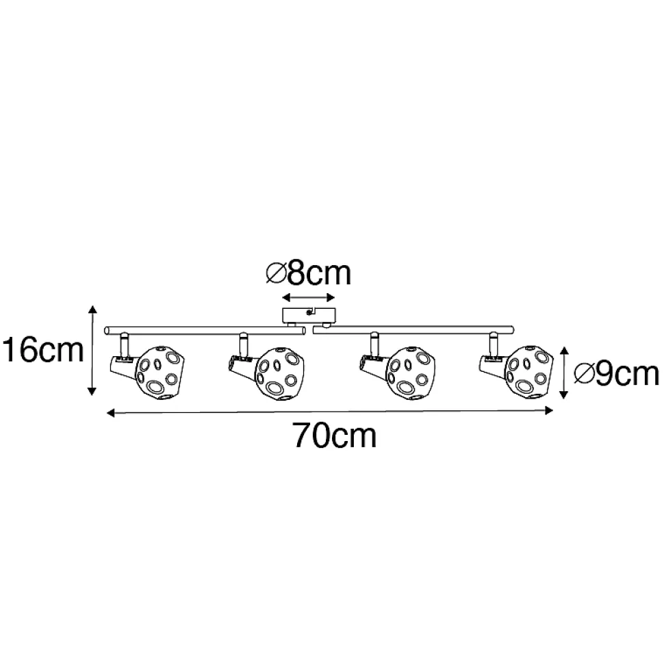 Wow, Vidro vole la vedette à chaque dîner ! Son verre fumé crée un bel effet lumineux dans la pièce. Fabriqué en acier et en verre, il est présenté dans une élégante finition dorée. Sa hauteur est de 16 cm, sa longueur de 70 cm et sa largeur de 10 cm. Le diamètre de la plaque de montage est de 8 cm, pour une épaisseur de 2,5 cm. Cet article ne comprend pas d’ampoule. Vous devrez fournir vous-même quatre ampoules à culot E14 (25W maximum). Chaque abat-jour a un diamètre de 9 cm et une hauteur de 8 cm. La lampe peut être utilisée pour un éclairage direct, fonctionnel ou d’ambiance. Convient à toutes les pièces ! Vidro peut être atténué par un variateur externe, qui n’est toutefois pas inclus. Créez une ambiance avec ce plafonnier tendance.