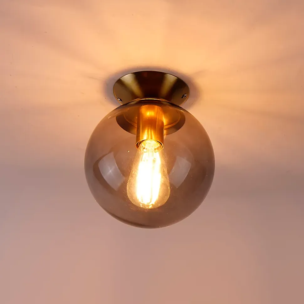 Le Pallon est un luminaire unique en son genre : la couleur laiton du verre combinée au verre fumé en fait un véritable chef-d’œuvre ! La boule en verre a un diamètre de 20 cm et une hauteur de 23 cm. La plaque de montage pour le plafond a un diamètre de 12 cm. Vous pouvez la compléter avec une ampoule d’une puissance maximale de 25 watts (grande douille E27). C’est donc une véritable lampe d’ambiance ! Elle est également compatible avec un variateur d’intensité (non inclus). Le luminaire peut être suspendu dans un salon ou une chambre à coucher, par exemple. C’est là qu’il s’exprimera vraiment !