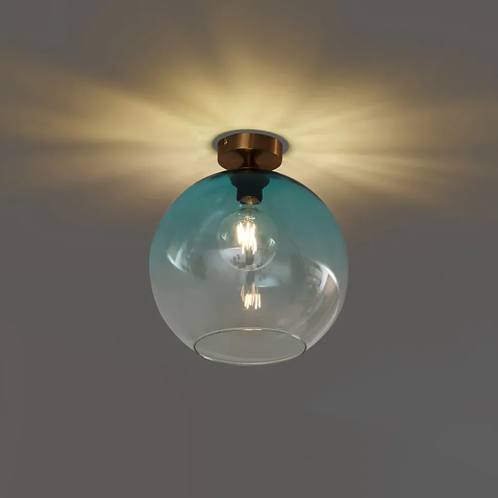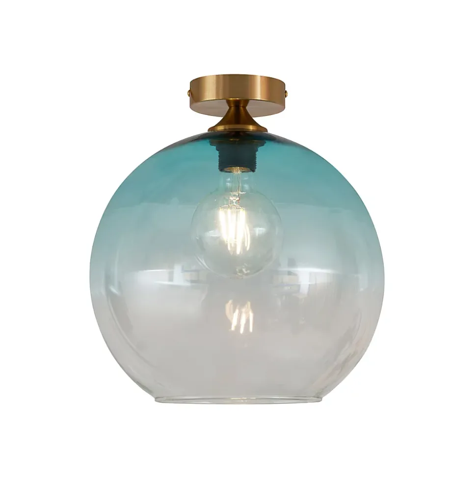 Ajoutez une touche de glamour à votre intérieur avec le plafonnier Sandra ! Ce magnifique plafonnier, fait de laiton et de verre bleu, dégage une atmosphère luxueuse et raffinée qui s’intègre parfaitement aux intérieurs classiques et modernes. Son design élégant et ses matériaux de haute qualité font du Sandra un véritable accroche-regard.Le plafonnier Sandra est conçu pour créer une atmosphère chaleureuse et accueillante. Le verre bleu diffuse la lumière de manière subtile et atmosphérique, tandis que le laiton offre un look chic et intemporel. Le plafonnier Sandra offre toujours la bonne ambiance.