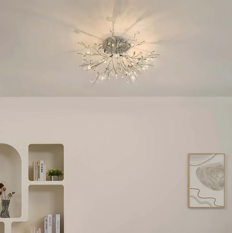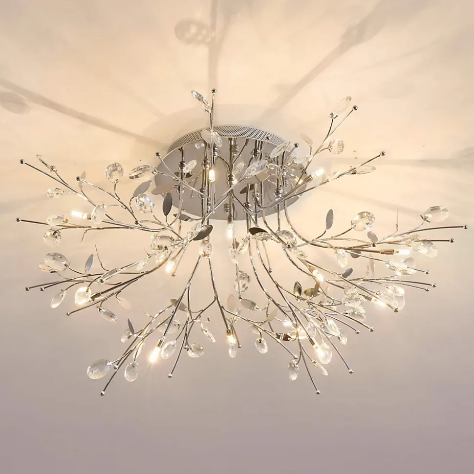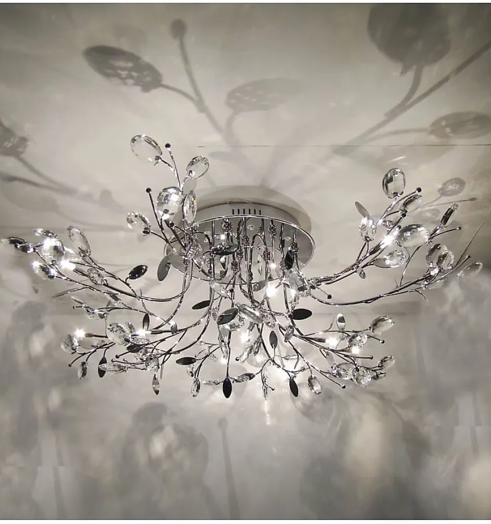 Apportez une touche de luxe à votre intérieur avec ce plafonnier chromé élégant et lumineux. Ses cristaux étincelants répandent la lumière de manière spectaculaire, créant une ambiance chaleureuse et accueillante dans votre espace de vie.) Assemblage à faire par vos soins (