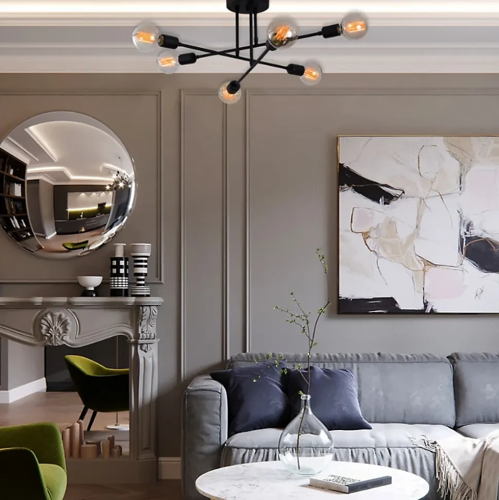 Lustre croisé en fer noirDécorez votre intérieur avec ce joli lustre croisé en fer noir. Sa matière originale offrira une touche de modernité à votre salon. Votre pièce sera parfaitement décorée et illuminée grâce aux 6 sources de lumière présentes sur cette suspension.Caractéristiques techniques Couleur principale : Noir Matière : Fer Nombre d’ampoules : 6 Puissance : 40W maximum Type d’usage : Intérieur Ampoule incluse : NonEntretienNettoyage facile à l’aide d’un chiffon humide.Dimensions Dimensions totales : 64 x 64 x 30 cm Poids total : 2 kgConditionnementLe produit est conditionné dans un colis de : 33 x 71 x 20 cm / 2 kg