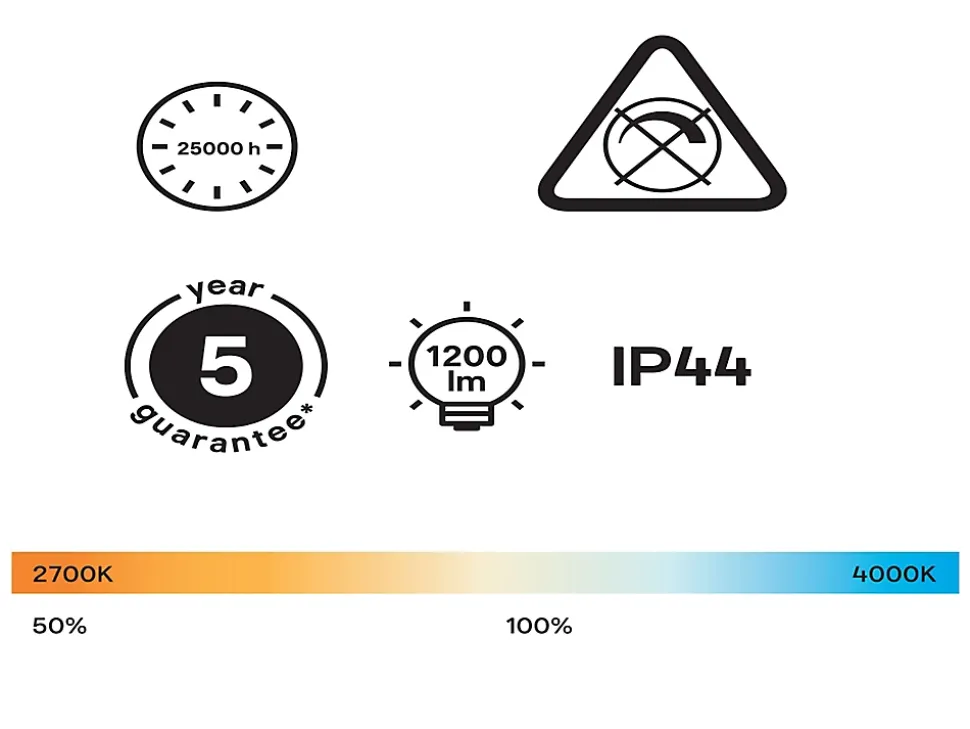 - Réglez la lumière à l’aide de votre interrupteur actuel. S’adapte à votre installation électrique actuelle. Aucun interrupteur spécifique n’est nécessaire. Appuyez une première fois sur l’interrupteur et l’ampoule s’allume dans une couleur neutre à une intensité de 100%, propice au travail. Appuyez une deuxième fois sur l’interrupteur et la lumière devient plus chaude à une intensité de 30%, propice à la détente. Appuyez une troisième fois sur l’interrupteur et la lumière s’éteint