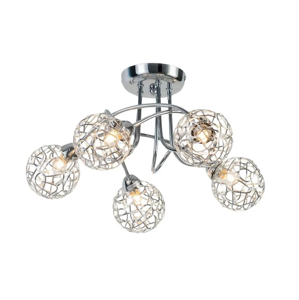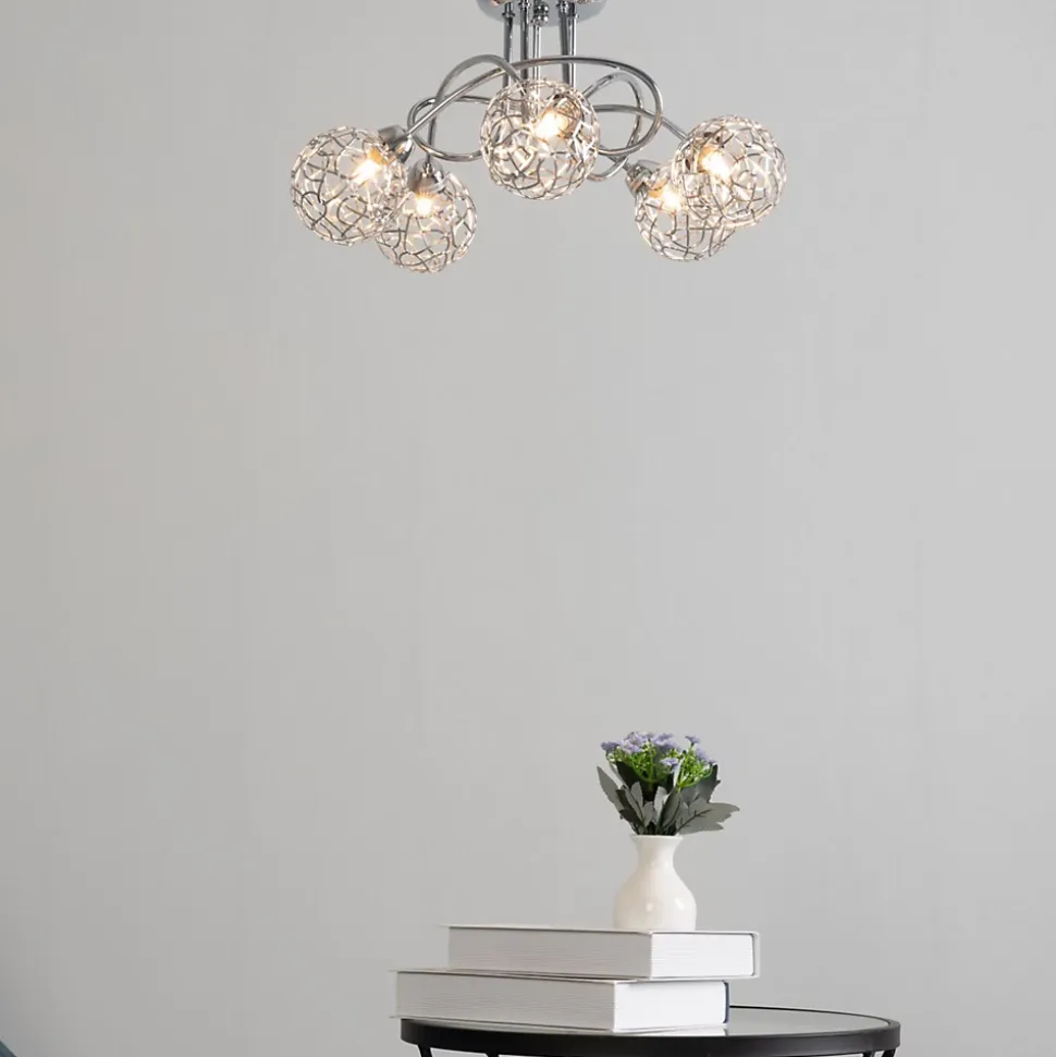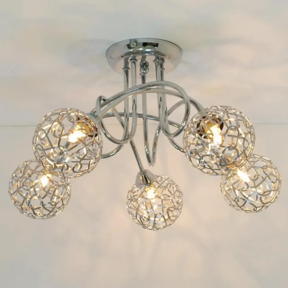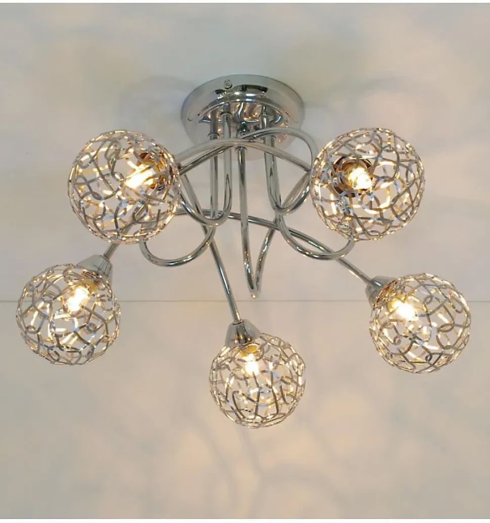 Offrez à votre intérieur une touche de modernité avec ce superbe plafonnier. Composé de 5 branches incurvées en métal chromé et de sphères en aluminium de 10 cm de diamètre, ce luminaire crée des jeux de lumière spectaculaires. Les ampoules G9 (non fournies) illuminent chaque sphère, produisant des effets lumineux enchanteurs qui ajoutent une touche de sophistication à votre décoration.) Assemblage à faire par vos soins (