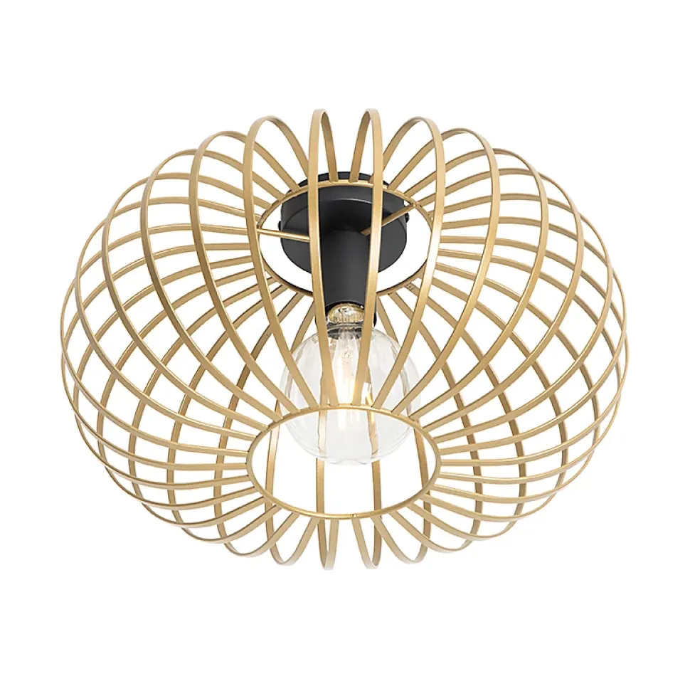 Votre intérieur a besoin d’un plafonnier élégant ? Johanna est fait pour vous ! Ses barres en acier laiton créent un magnifique effet lumineux sur le mur. La combinaison de noir et de laiton apporte également une touche moderne à votre intérieur. Son diamètre est de 39 cm et sa hauteur de 22 cm. La plaque de montage mesure 9 cm de diamètre et 2,5 cm de hauteur. L’abat-jour a un diamètre de 39 cm et une hauteur de 19,5 cm. Vous pouvez compléter le plafonnier avec une ampoule à culot E27 (40W maximum). N’oubliez pas de la commander séparément. Choisissez une ampoule qui soit également esthétique, car elle est bien visible dans le luminaire. Le plafonnier peut également être atténué à l’aide d’un variateur externe (non inclus). Johanna est un magnifique plafonnier design pour le salon, le couloir ou la chambre à coucher. Ajoutez plus d’ambiance à votre intérieur avec ce magnifique plafonnier !