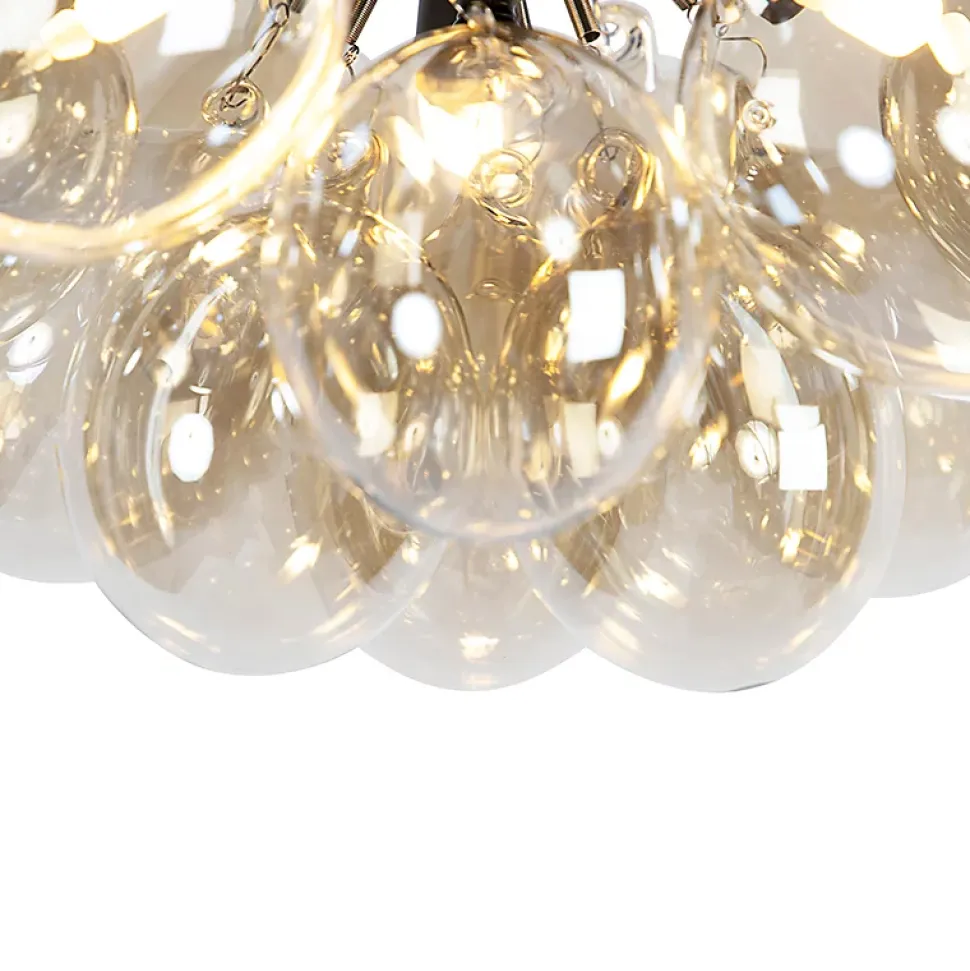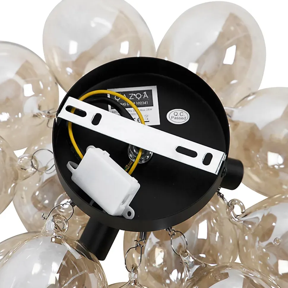 Le Uvas est un véritable atout pour votre intérieur ! Un accroche-regard qui donnera vie à n’importe quelle pièce de la maison. Il fera sensation dans le salon ou la chambre à coucher. Le Uvas est également un régal pour les yeux au bureau. La combinaison du cordon noir et des ampoules en verre ambré lui confère un look super Art déco. Son diamètre est de 30 cm et sa hauteur de 32 cm. La plaque de montage mesure 8 cm de diamètre et 10 cm de hauteur. Vous pouvez compléter ce Uvas avec 3 ampoules G9 (28W maximum), que vous devrez commander séparément. Vous pouvez également le faire varier avec un variateur externe, ce qui rendra votre maison encore plus atmosphérique avec le Uvas ! La pièce maîtresse ultime, complétez votre intérieur Art déco et design !
