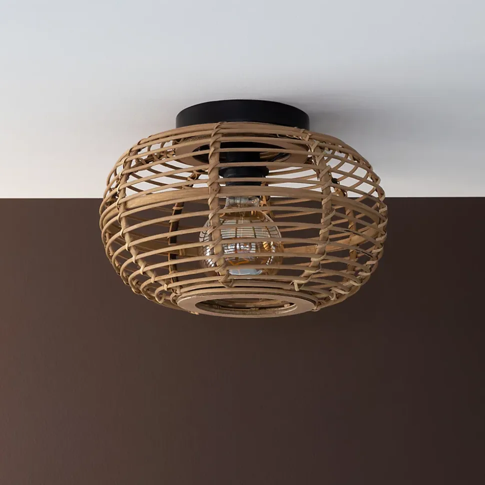 Plafonnier E27 40W beige et noir Ø32cm Brilliant, Woodball