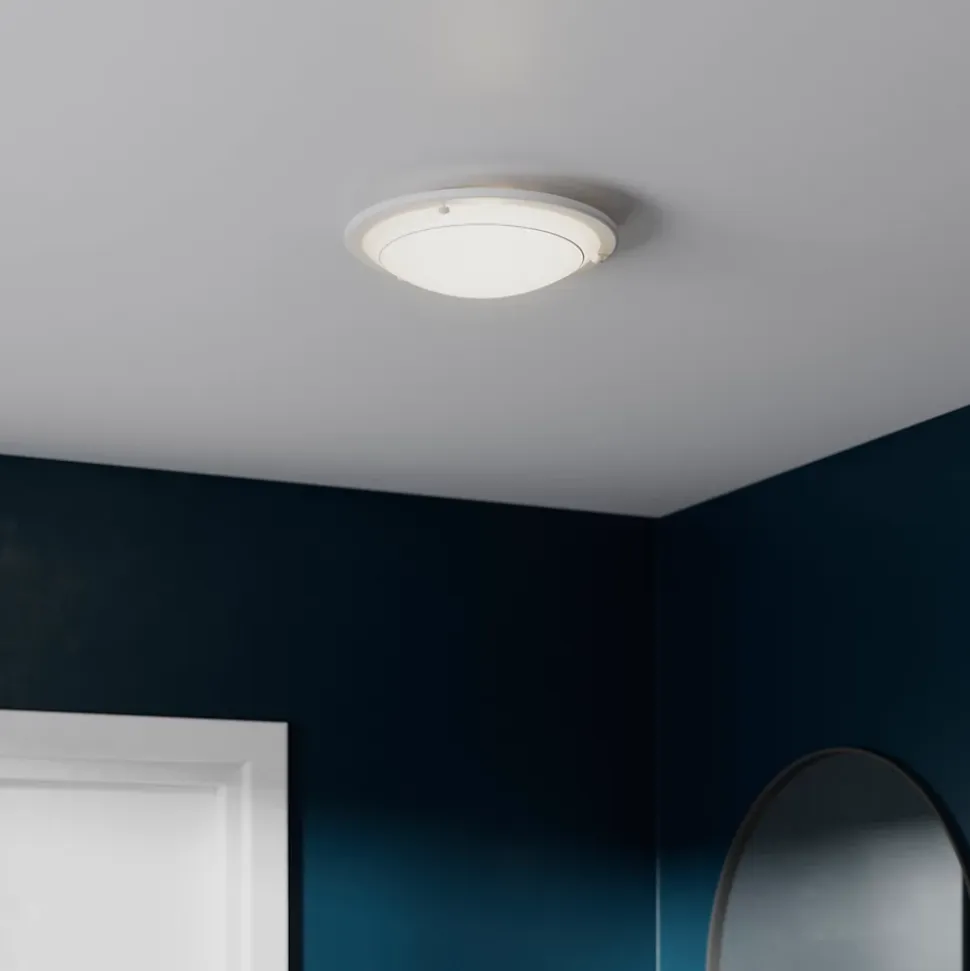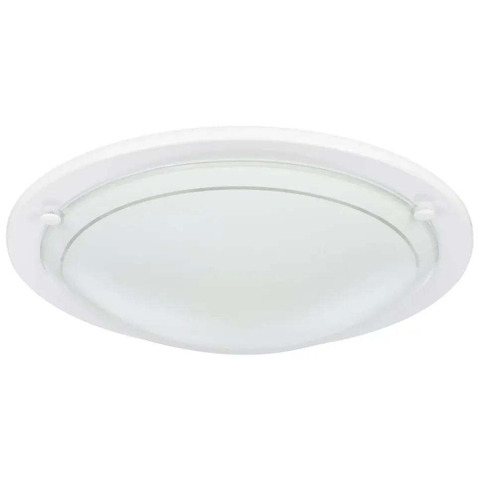 Plafonnier E27 42W GoodHome Hubaa blanc mat effet givré H.8 x Ø29 cm