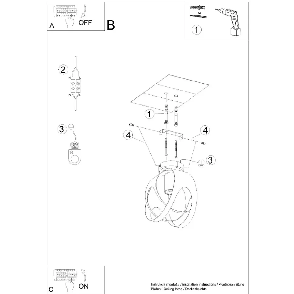 - Source lumineuse : E27, 1x LED max 15W, ~230V, 50Hz, IP20, classe de protection I.