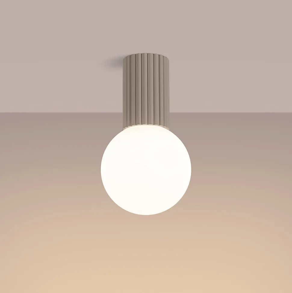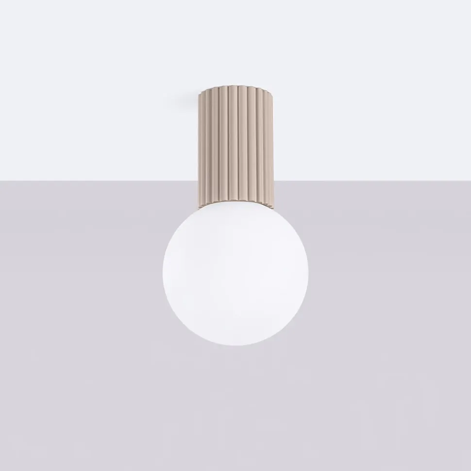- Conception unique avec un corps cannelé et une boule laiteuse.