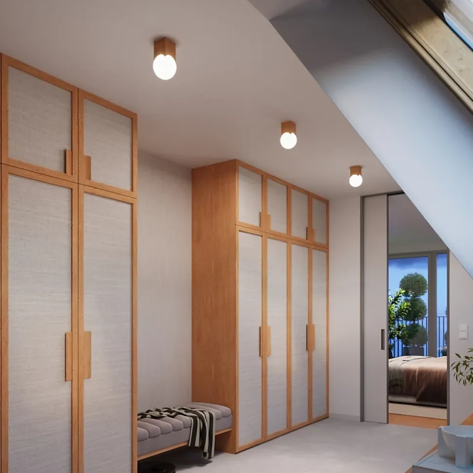 Le plafonnier LUMIVERE en bois naturel est un plafonnier moderne qui allie la chaleur du bois à un design minimaliste. Une base en bois à l’abat-jour naturel soutient l’abat-jour sphérique mat, créant un contraste élégant. Parfait pour les intérieurs qui privilégient la simplicité et les matériaux naturels.