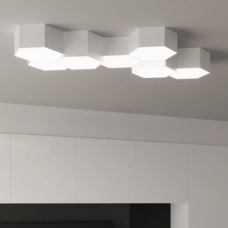 Vous aimez les formes géométriques et vous voulez les voir dans votre intérieur ? Découvrez Sunde, une collection de plafonniers qui attireront votre attention par leur forme hexagonale régulière. Ils ne prennent pas beaucoup de place et sont parfaits pour les plafonds bas. Elles rempliront votre salon, votre chambre à coucher ou votre cuisine d’une lueur chaleureuse. Les plafonniers de la collection SUNDE sont disponibles en 2 versions de couleurs classiques : blanc et noir, ainsi qu’en 3 tailles différentes. Cela signifie que vous pouvez facilement trouver le modèle parfait pour votre intérieur.