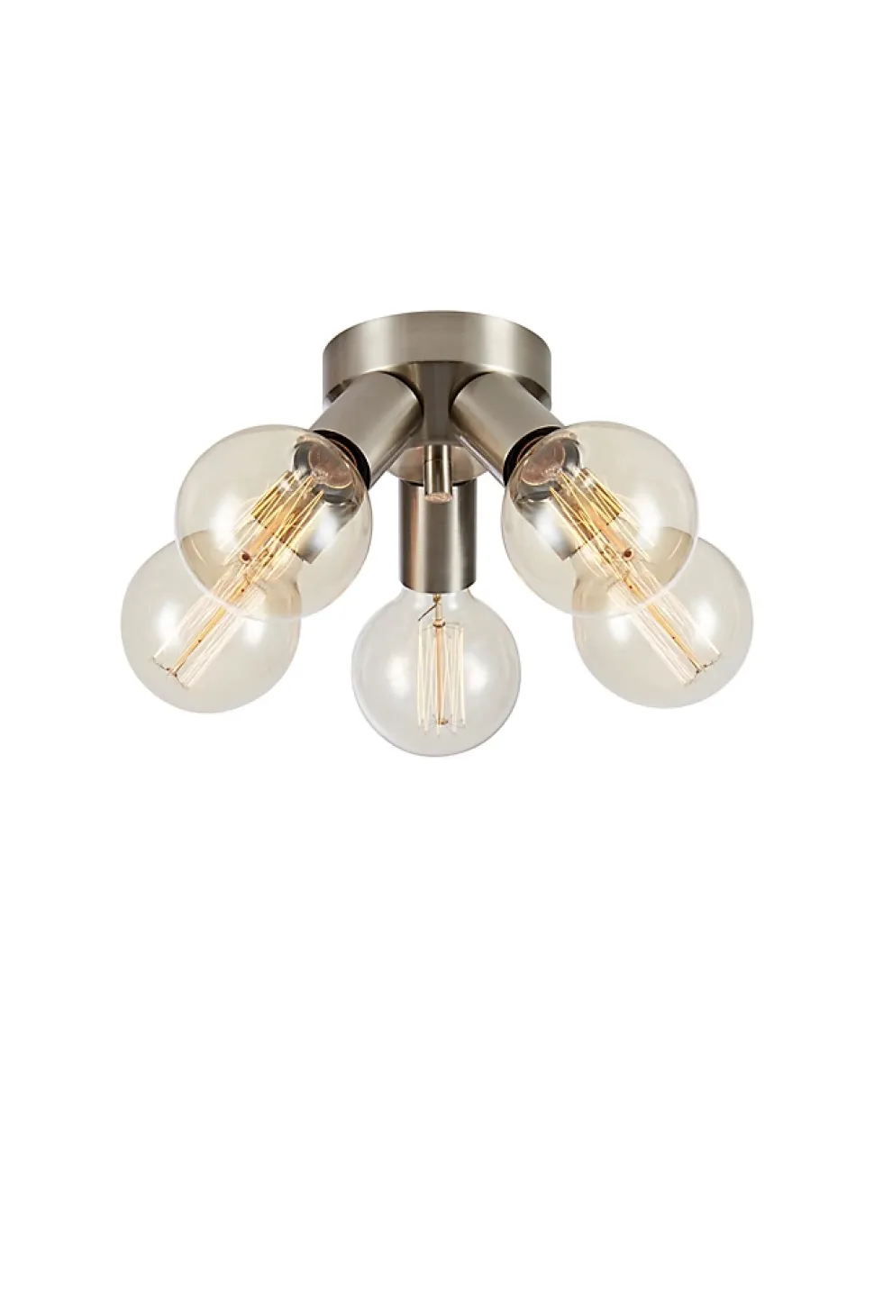 Les caractéristiques techniquesLe plafonnier encastré MAZZO de Markslöjd en finition nickel satiné est équipé de cinq douilles E27 orientables. Cette configuration permet de diriger la lumière selon vos préférences pour une répartition optimale dans la pièce.Il fonctionne avec cinq ampoules de 40 W maximum ou des équivalents LED, non incluses. Son montage au plafond est simple grâce à un support robuste intégré.Conçu en fer, ce luminaire combine durabilité et design contemporain. Il fonctionne sous une tension standard de 230 V et n’intègre pas de variateur.Les avantages esthétiquesAvec sa finition en nickel satiné, ce plafonnier affiche une allure sobre et élégante, parfaite pour un intérieur moderne ou industriel.Les cinq douilles orientables permettent de personnaliser l’éclairage en fonction des zones à mettre en valeur, rendant ce luminaire aussi décoratif que fonctionnel.Idéal pour un salon, une chambre ou un bureau, il apportera une touche design tout en assurant un éclairage performant.