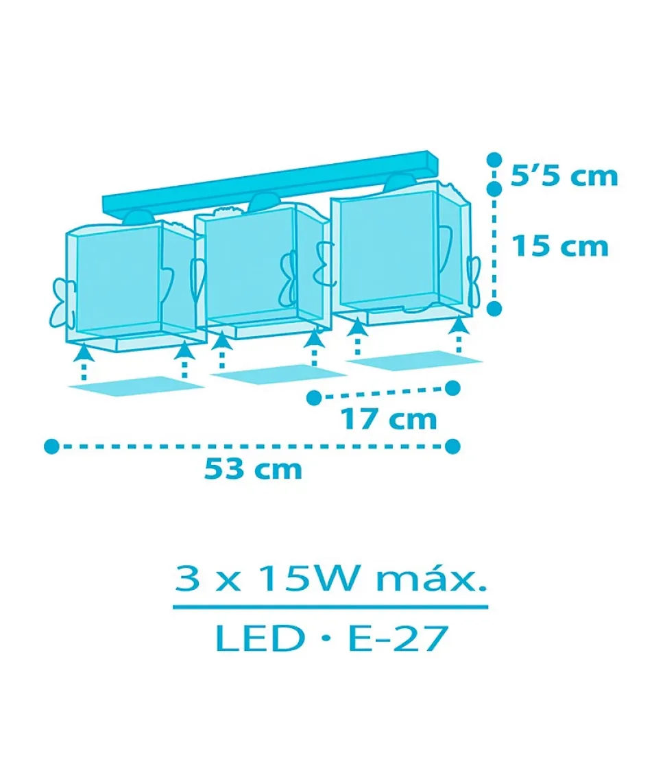 Plafonnier 3 lumières avec des requins découpés colorés, composé d’un double abat-jour transparent en bleu, ces mignons requins créent une atmosphère agréable et originale !.