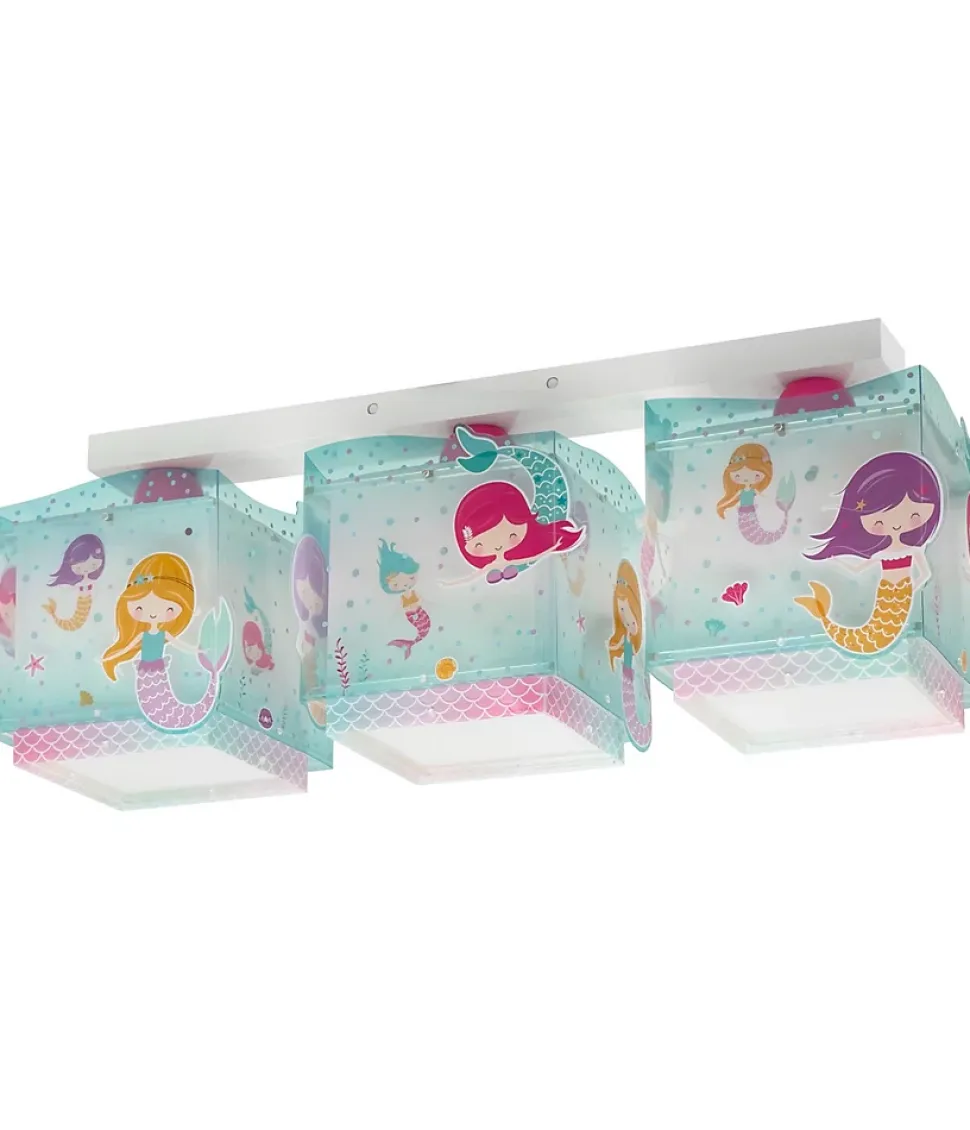 Plafonnier à 3 lumières avec un imprimé sirène, composé d’un double abat-jour transparent en mauve, ces jolies sirènes créent une atmosphère agréable et originale!.