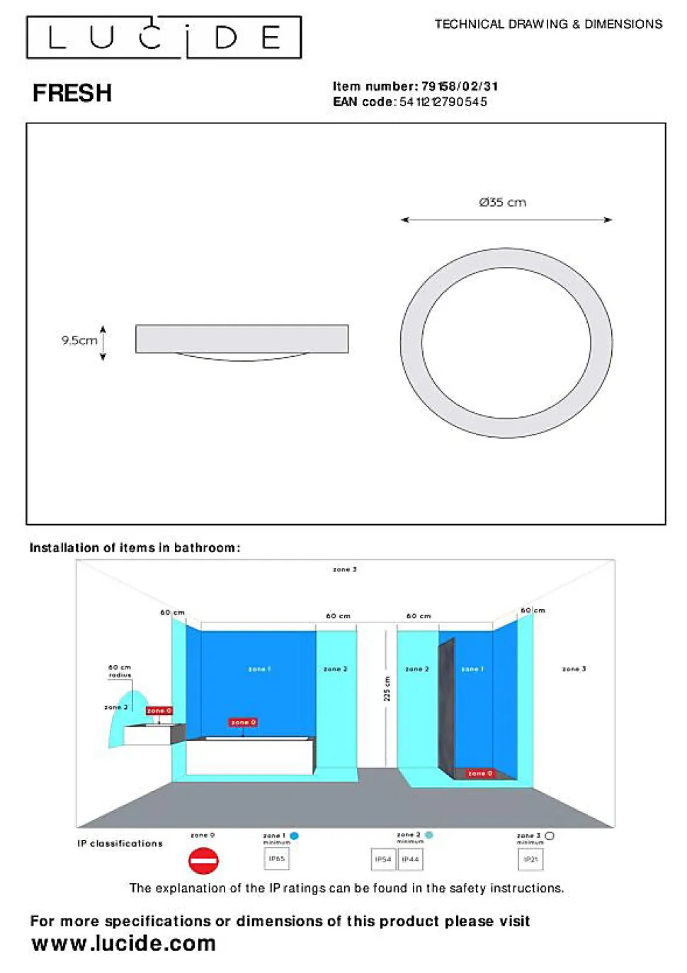 Le plafonnier Fresh de Lucide porte très bien son nom! Un design novateur avec une épaisseur de 9 cm, il s’adaptera facilement à n’importe quel plafond. En outre, avec son indice de protection de 44, il pourra être placé dans votre salle de bains. La finition blanche mate ou chrome mate lui confère une allure très élégante. Ce plafonnier est pourvu de 2 douilles E27 ce qui vous permettra d’installer une ampoule à économie d’énergie.Caractéristiques uniques:• Utilisable avec des sources lumineuses LED• Facile à connecter à un variateur (non fourni)• Fabriqué en acryliquePrincipales caractéristiques du produit:• Peut-être utilisé dans une salle de bain (IP44)• Consommation énergétique: 2x20W / 230V / A intensité variable (Ampoules non incluses)• Dimensions: Ø35 cm Haut.9,5 cm• 2 Ans garantie sur le luminaire / source de lumière appropriée est EAN: 5411212490742Pourquoi choisir l’éclairage Lucide?Lucide incarne un design innovant, un savoir-faire artisanal et une fiabilité exemplaire. En tant qu’entreprise familiale belge avec plus de trois décennies d’expertise, nous concevons des éclairages de haute qualité qui enrichissent et transforment chaque espace, tant intérieur qu’extérieur. Notre collection polyvalente comprend des luminaires durables et des sources lumineuses économes en énergie, soigneusement conçus par nos propres experts et fabriqués selon les normes CE les plus strictes. Grâce à notre large gamme, nous vous proposons toujours une solution d’éclairage adaptée, quel que soit le style ou l’espace. Ainsi, nous illuminons non seulement votre espace de vie mais aussi votre processus de choix dans la recherche d’un éclairage de qualité et abordable. Chez Lucide, nous combinons innovation et savoir-faire pour un éclairage qui ajoute non seulement de l’ambiance, mais transforme chaque maison en foyer.