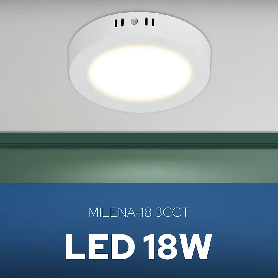 Plafonnier LED 18W 1660 lm 3CCT IP20 rond blanc MILENA | HOROZLe plafonnier HOROZ MILENA 18W est un éclairage LED élégant, économe en énergie et pratique, conçu pour les intérieurs modernes ainsi que pour les espaces professionnels.Il convient parfaitement aux couloirs, halls d’entrée, chambres, cuisines, bureaux ou locaux commerciaux — partout où un éclairage fiable et esthétique est nécessaire.Son boîtier rond et minimaliste apporte une touche contemporaine à l’intérieur et s’intègre harmonieusement dans des aménagements clairs ou foncés. Sa conception fine en fait un élément discret qui souligne le style de la pièce sans dominer l’espace.Paramètres techniques :✔️Type d’installation : En saillie✔️Application : Intérieur✔️Tension : 160–265V✔️Puissance : 18W✔️Flux lumineux : 1660 lm✔️Efficacité lumineuse : 92 lm/W✔️Température de couleur : 3CCT (3000K / 4000K / 6500K)✔️Indice de rendu des couleurs : >Ra70✔️Angle de diffusion : 120°✔️Matériau : Plastique (PC)✔️Classe de protection : II✔️Indice de protection : IP20✔️Dimmable : Non✔️Temps d’allumage : 15 000Dimensions :✔️Diamètre : Ø173 mm✔️Hauteur : 32 mm