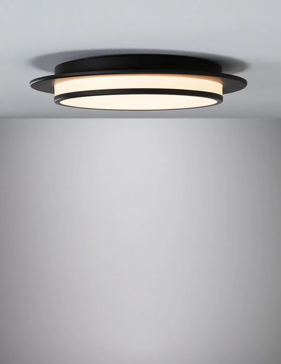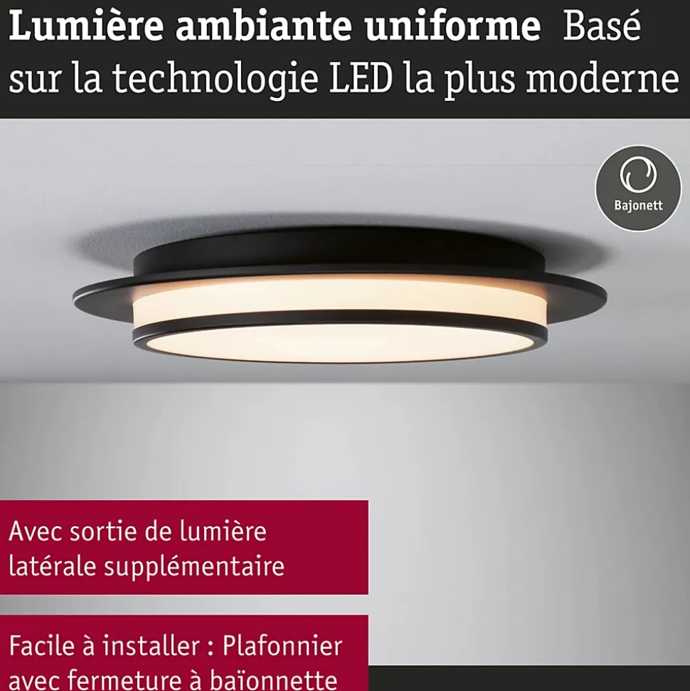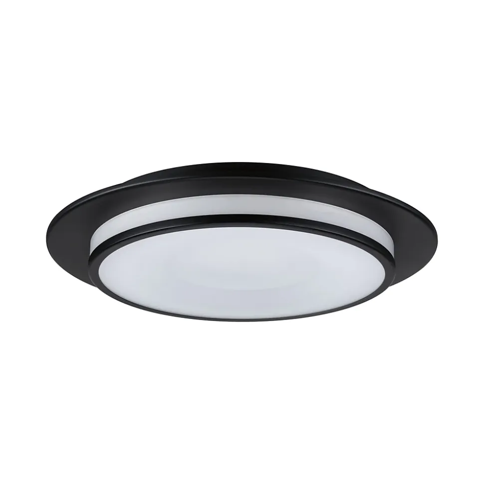 Intensité gradable par interrupteur|3 niveaux de luminosité|Avec diffuseur satiné pour une répartition homogène de la lumière|Température de couleur: 2700K – Blanc chaud|Pour pose au mur/plafond.|Couleur: Noir