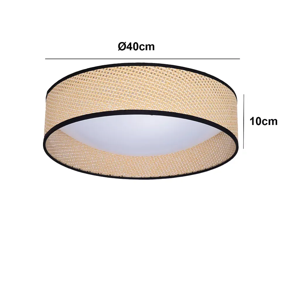Plafonnier LED Rotin Ø40cm 30W CCTPlafonnier LED avec abat-jour en rotin de Ø40 cm, parfait pour apporter une touche chaleureuse et organique à n’importe quel espace. Son design associe des matériaux texturés et artisanaux à une technologie LED moderne et performante, idéale pour créer des ambiances confortables et fonctionnelles.✔ Lumière sélectionnable (CCT) : Intègre un sélecteur permettant de choisir entre trois températures de lumière :Lumière chaude 3000K, atmosphère douce et relaxante.Lumière neutre 4000K, parfaite pour un usage quotidien.Lumière froide 6000K, idéale pour un éclairage plus intense.✔ Puissance : 30W LED à haut rendement, offrant un éclairage homogène avec une faible consommation d’énergie.✔ Design artisanal : L’abat-jour en rotin tressé à la main diffuse la lumière de manière douce, créant une ambiance accueillante qui s’adapte parfaitement aux intérieurs d’inspiration nordique, bohème ou rustique.✔ Installation facile : Kit de montage inclus, adapté à différents espaces intérieurs.✔ Applications : Salon, chambre, salle à manger, couloir, bureau, boutiques, restaurants ou tout espace souhaitant une ambiance agréable et un style soigné.