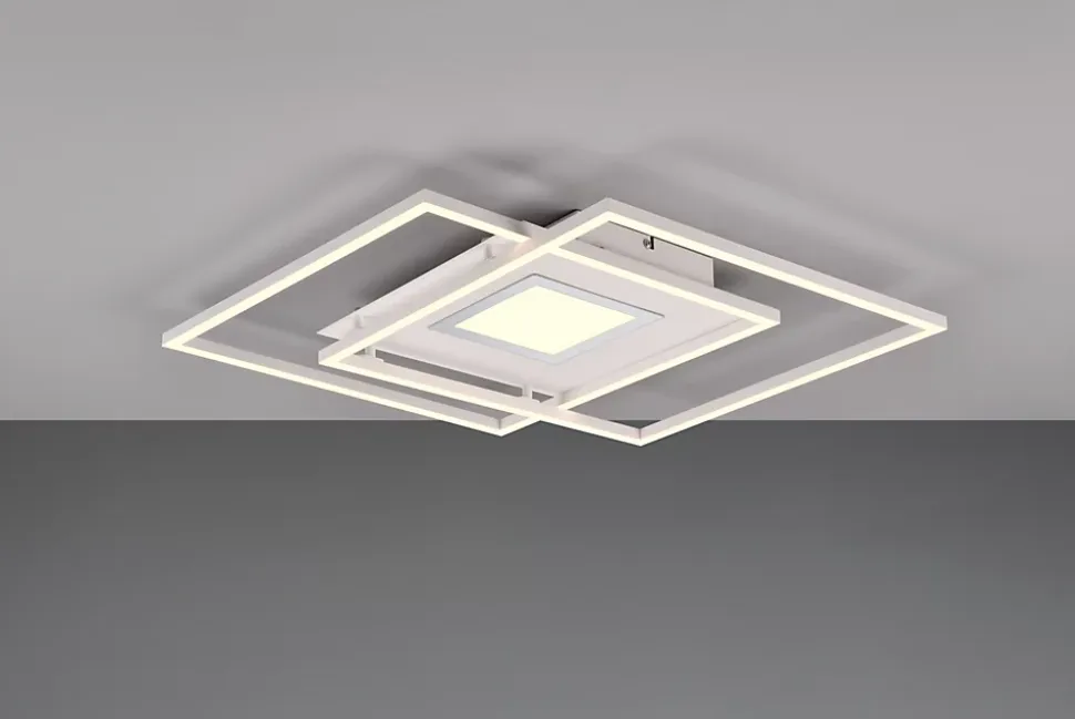 Les caractéristiques techniquesLe plafonnier LED Via de la marque Trio affiche un design moderne tout en offrant des fonctionnalités avancées. Conçu en métal blanc mat, ce luminaire carré de 50 cm de côté ne mesure que 6,5 cm de hauteur, ce qui le rend discret mais élégant, que ce soit au plafond ou au mur.Équipé d’une source LED SMD intégrée, il développe une puissance de 36 watts pour un flux lumineux de 4200 lumens. Sa température de couleur est ajustable en continu, de 2700K (blanc chaud) à 6500K (blanc froid), afin de créer l’ambiance lumineuse idéale à tout moment.Les avantages esthétiques et fonctionnelsLa télécommande fournie permet de varier l’intensité lumineuse à volonté, de régler la température de couleur, d’activer une fonction mémoire, et même d’utiliser un mode veilleuse très pratique en soirée.Ce luminaire moderne séduit par sa forme géométrique minimaliste, qui s’intègre aussi bien dans une chambre que dans un salon ou un bureau.Attention : non compatible avec un variateur mural externe.Un éclairage économique et durableGrâce à sa technologie LED, ce plafonnier permet de réaliser jusqu’à 80 % d’économie d’énergie comparé à une ampoule halogène traditionnelle. Avec une durée de vie de 30 000 heures et un indice de rendu des couleurs supérieur à 80, il assure un éclairage confortable tout en préservant l’environnement.