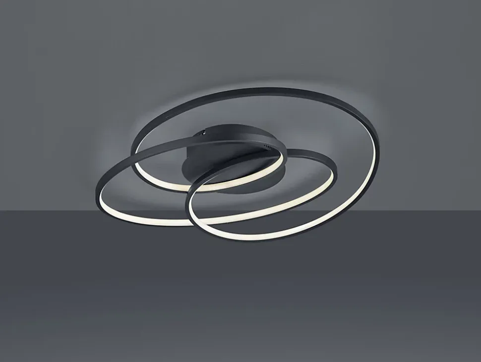 Les caractéristiques techniquesLe plafonnier Gale signé Trio est un véritable concentré de performance et de design. Il intègre une LED SMD de 38,5W pour une puissance lumineuse impressionnante de 5000 lumens, idéale pour un éclairage principal dans un salon, une salle à manger ou un couloir.Sa température de couleur de 3000K offre une lumière blanche chaude, confortable et accueillante. Le système SWITCH dimmer permet de varier l’intensité lumineuse à 100 %, 50 % ou 25 %, simplement via un interrupteur mural classique. Avec une hauteur de 13,5 cm et une largeur de 60 cm, Gale reste discret tout en étant très efficace.Les avantages esthétiquesAvec son coloris noir mat et son design graphique moderne, le plafonnier Gale s’intègre aussi bien dans des intérieurs contemporains que plus sobres. Il apporte une touche de caractère sans en faire trop, tout en restant très fonctionnel.Sa construction en métal de qualité garantit solidité et durabilité. De plus, grâce à la technologie LED intégrée, vous économisez jusqu’à 80 % d’énergie par rapport à des lampes halogènes, tout en bénéficiant d’une durée de vie de 30 000 heures.