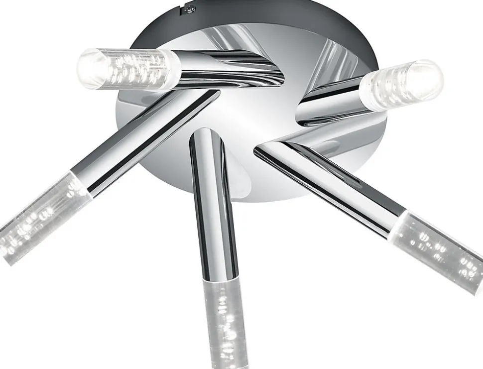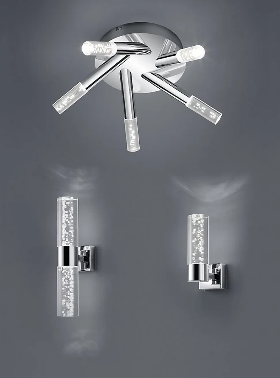 Un plafonnier design pour sublimer votre salle de bainsLe plafonnier BOLSA de TRIO allie élégance et performance. Sa forme ronde associée à un effet « bulle » original crée un véritable élément de décoration. Idéal pour la salle de bains, il apporte une touche de modernité tout en assurant un éclairage agréable.Conçu pour les environnements humidesGrâce à son indice de protection IP44, BOLSA est parfaitement adapté aux pièces d’eau : salle de bains, buanderie, toilettes, etc. Résistant à l’humidité et aux éclaboussures, il allie esthétique et fiabilité au quotidien.Un éclairage LED performant et économiqueLe plafonnier est équipé de 5 modules LED intégrés de 3,1W chacun, offrant une luminosité totale de 1550 lumens avec une teinte chaude de 3000 K. Ce type d’éclairage est à la fois énergétiquement efficace et durable : jusqu’à 50 000 heures de fonctionnement !Un look chic et raffinéLa finition chromée du corps en métal se marie parfaitement avec les diffuseurs en acrylique transparent, pour un rendu lumineux et épuré. Avec ses 41 cm de diamètre, il s’impose discrètement comme un élément déco à part entière.Facile à installer et sécuriséMonté directement au plafond, ce luminaire fonctionne sur le secteur 230V et possède un degré de protection classe II. Il ne nécessite aucun entretien particulier, et ses LED intégrées ne sont pas remplaçables, ce qui évite toute manipulation technique.