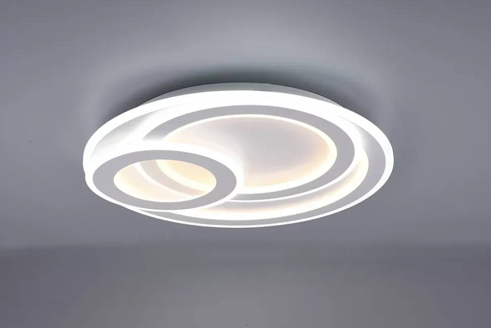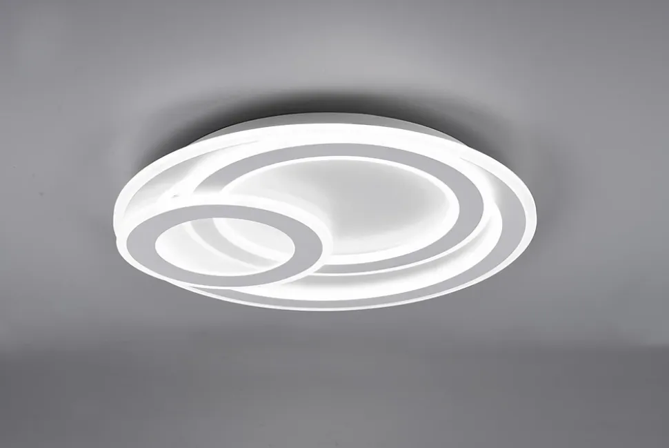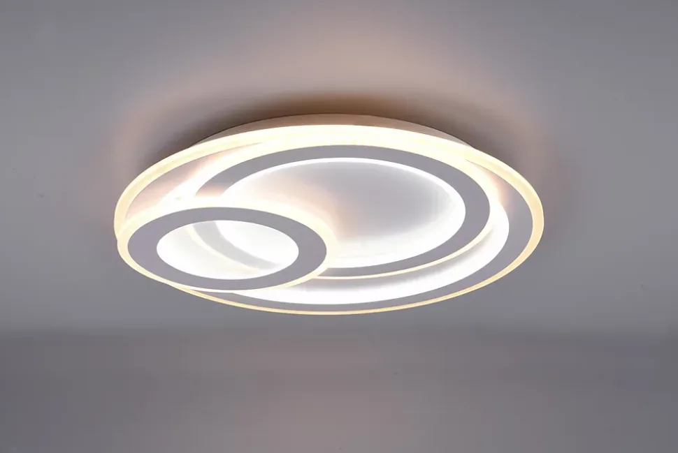 Les caractéristiques techniquesLe plafonnier Mita de Trio est un luminaire LED SMD de 74W avec un flux lumineux exceptionnel de 9000 lumens. Il offre une plage de température de couleur variable de 2700K à 6000K, permettant d’ajuster l’éclairage de votre pièce selon vos besoins.Grâce à la télécommande incluse, vous pouvez régler l’intensité lumineuse et la couleur de la lumière de manière continue. Il dispose également d’une fonction veilleuse de nuit pour des ambiances tamisées.Les avantages esthétiquesAvec son design moderne et élégant en blanc mat, le plafonnier Mita s’adapte à tous types d’intérieurs, que ce soit dans une chambre ou un salon. Il crée une atmosphère douce et agréable, tout en ajoutant une touche de sophistication à votre décoration.Usage et installationFixation plafond ou mur, indice de protection IP20 adapté pour un usage intérieur.Dimensions : diamètre 51 cm, hauteur 7 cm.Ne convient pas pour variateur externe.