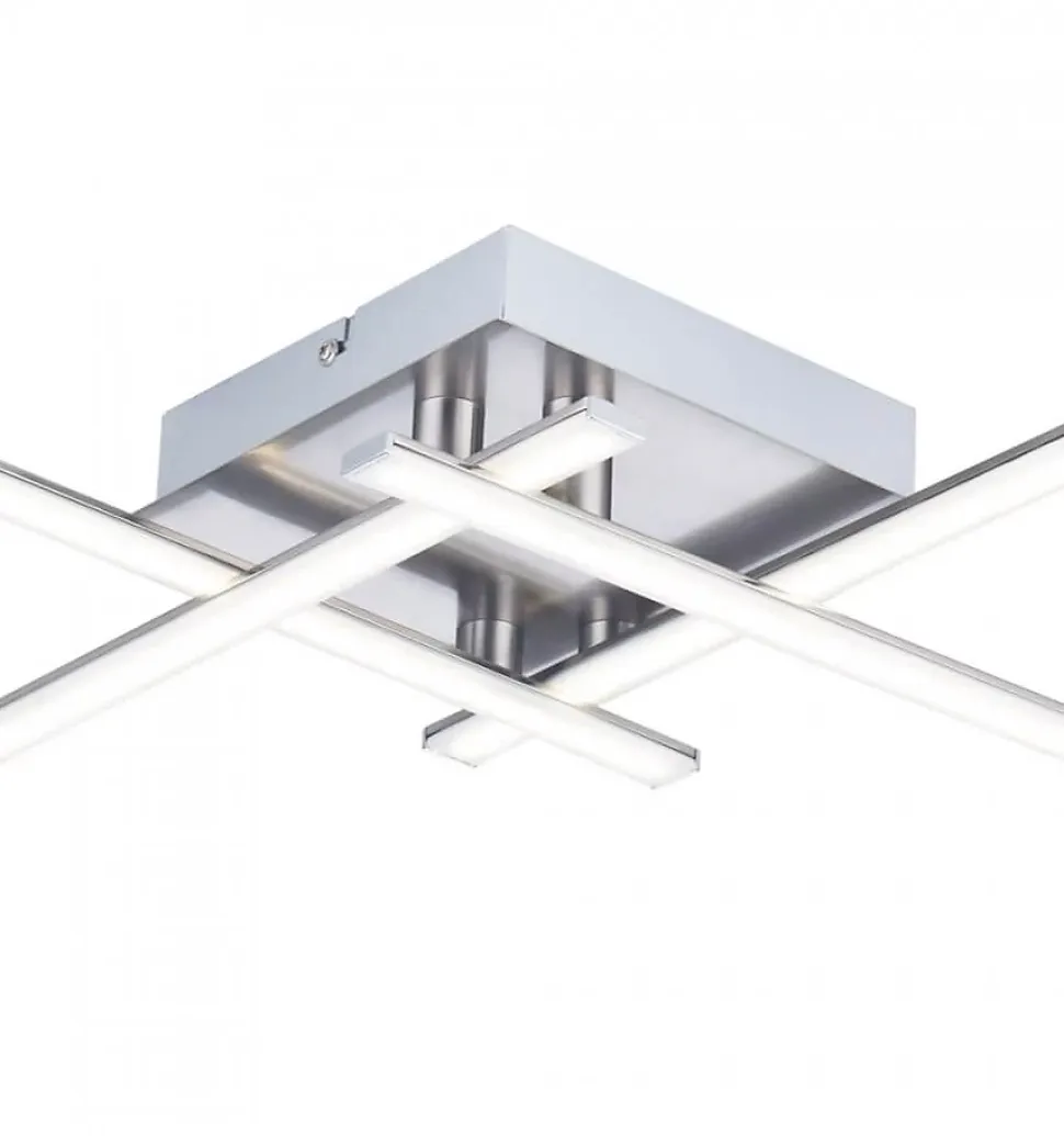 Magnifique plafonnier en métal à LED intégrées. Il se compose de 4 bras couleur nickel mat contenant des LED de couleur blanc chaud et d’une puissance totale de 24W. Econome et design, ce joli luminaire à la forme géométrique offrira à votre intérieur un décor futuriste.) Livré monté, prêt à installer (