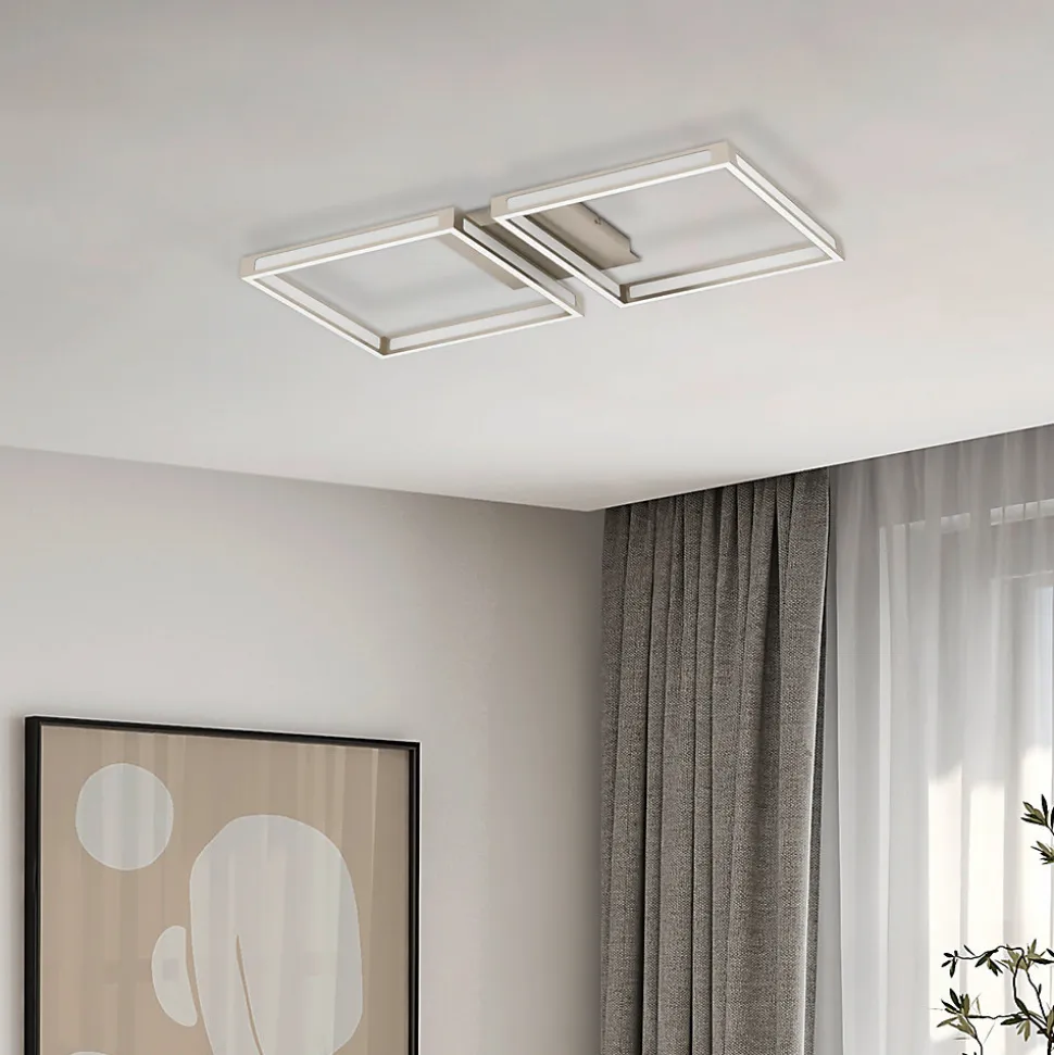 - Le plafonnier ALTAFLOR est parfait pour illuminer votre intérieur moderne. Sa couleur nickel mat se place facilement dans tous types de décoration. Les LED intégrées diffusent une lumière blanc chaud agréable. Ce plafonnier ne se contente pas d’éclairer vers le bas, il diffuse aussi la lumière de façon indirecte grâce aux LED placées à l’intérieur des cadres. Il crée alors une vraie ambiance lumineuse, parfaite pour toutes les pièces.