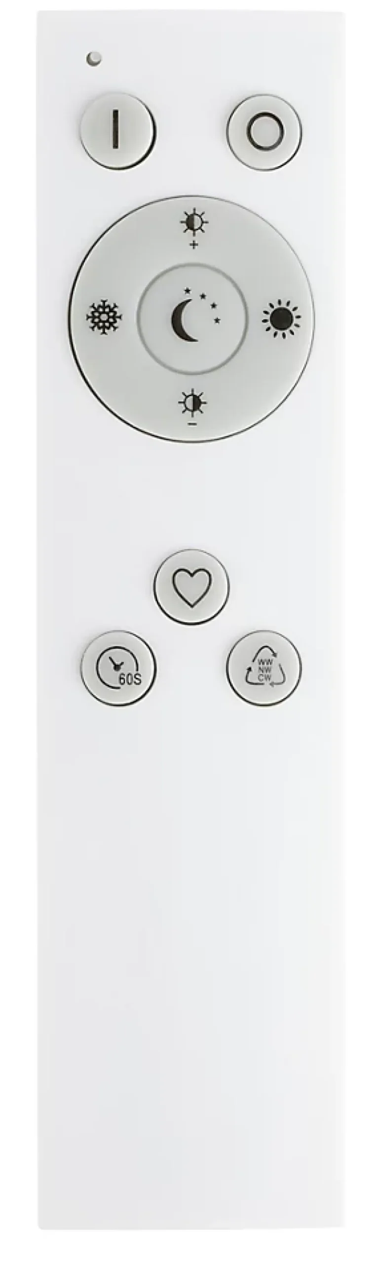 - Ce plafonnier comprend une télécommande pour adapter la lumière à l’utilisation : lumière neutre à 100% d’intensité propice au travail, blanc chaud à 30% d’intensité propice à la détente, etc.