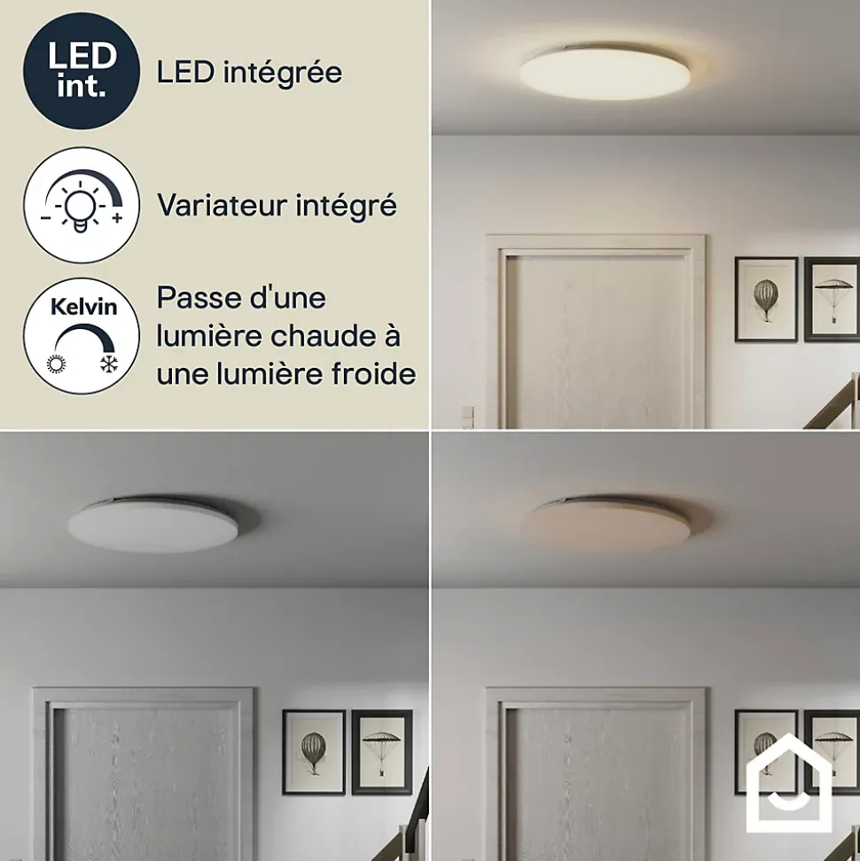 Plafonnier LED intégrée dimmable 3100lm 36W blanc froid, blanc neutre et blanc chaud GoodHome Basilo h.6.5 x ø57 cm