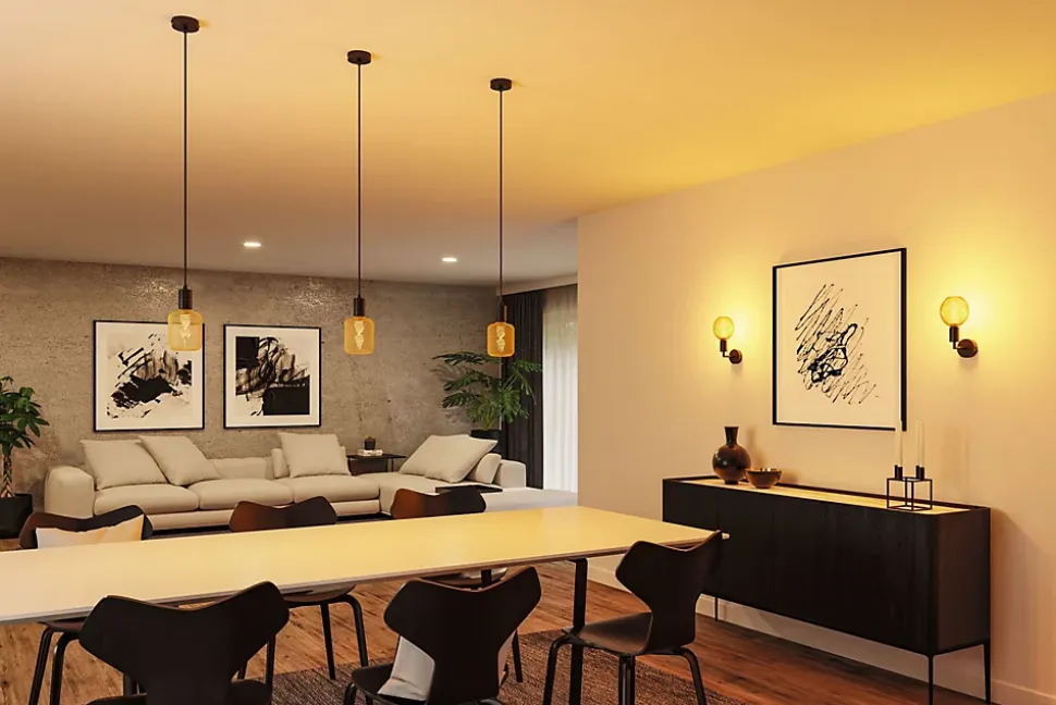 L’effet Mix & Match résolument tendance permet d’embellir l’intérieur avec un accroche-regard original. L’applique moderne Ravi en Noir mat en est l’illustration parfaite. Avec son design moderne minimaliste et sa combinaison de coloris attrayante, cette pièce phare est du plus bel effet dans un intérieur. En combinaison avec les ampoules décoratives de Paulmann, il forme le duo parfait. Le luminaire offre un effet particulièrement harmonieux lorsqu’il est associé à des ampoules des séries White Lampion ou Metallic Glow. Les ampoules équipées de culot E27 et de max. 60 watts offrent une autre alternative. Grâce à la protection IP44, l’applique Ravi peut même être utilisée dans la salle de bain. Selon l’ampoule utilisée, la lampe est dimmable.