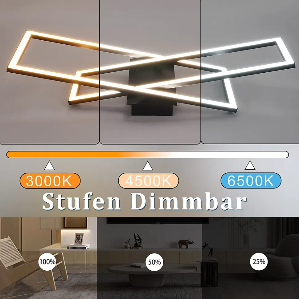 [Design moderne] Le plafonnier LED présente un design géométrique composé d’éléments lumineux rectangulaires entrecroisés dans une forme élégante et minimaliste. Ce n’est pas seulement une lumière intérieure décorative, mais fournit également un éclairage chaleureux pour votre pièce [Fonction dimmable et de minuterie] La luminosité (0%-100%) et la température de couleur (3000K-6500K) du plafonnier LED peuvent être réglées à l’aide de la télécommande incluse. Grâce à la fonction minuterie, les plafonniers s’éteignent automatiquement 60 secondes avant d’aller au lit. et vous pouvez également régler le mode veilleuse (10% de luminosité) pour vous endormir plus rapidement. Diverses fonctions pour vos différents besoins d’éclairage [Efficacité énergétique et protection des yeux] Plafonnier carré moderne 36W/45W, 4500/5500LM, plus économe en énergie que les ampoules traditionnelles, avec une longue durée de vie de plus de 20 000 heures. Cela garantit un meilleur effet visuel, le plafonnier adopte une source de lumière LED stable, sans éblouissement et sans scintillement, ce qui peut mieux protéger vos yeux [Large application] Ce plafonnier LED moderne et élégant est parfait pour une utilisation comme lampe de chambre, lampe de salon, lampe de cuisine. Convient pour un espace de 5 à 20 mètres carrés tel que salon, chambre, salle à manger, cuisine, chambre d’enfants, bureau, salle de jeunesse, etc. C’est également un cadeau de pendaison de crémaillère idéal pour les amis et la famille ! [Installation facile] Conception d’installation humanisée, l’installation du plafonnier à intensité variable et l’utilisation de la télécommande peuvent être trouvées dans le manuel d’instructions dans l’emballage. Si vous rencontrez des problèmes lors de l’installation ou de l’utilisation, veuillez nous contacter, nous résoudrons le problème pour vous dans les plus brefs délais.: