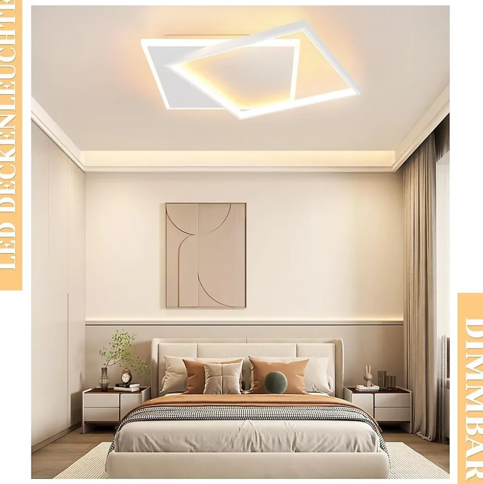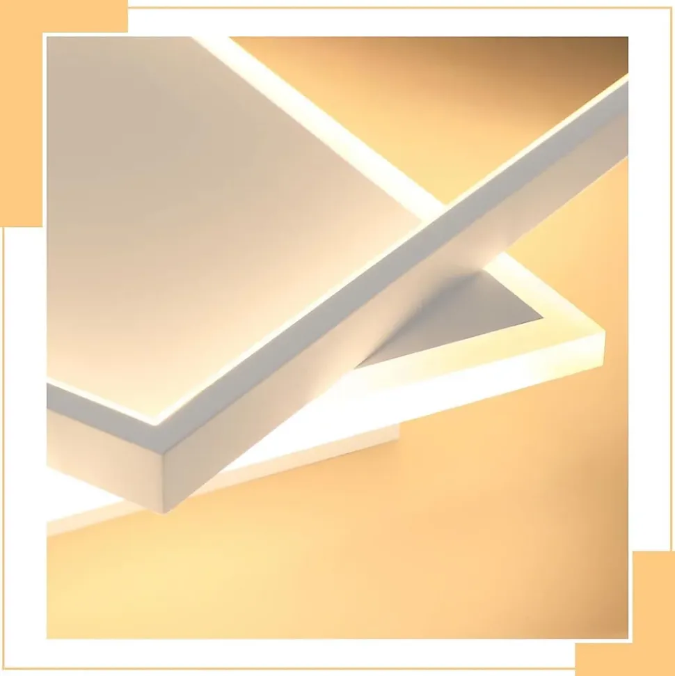 Nouveau design unique – Ce plafonnier LED se compose de deux carrés qui se chevauchent pour créer un motif original. Les LED intégrées épousent la forme des carrés et créent un jeu de lumière captivant au plafond. Sa couleur blanche lui confère une allure élégante et complète son caractère moderne.Caractéristiques techniques : Dimensions : 44 x 41 x 5,6 cm ; Tension : 220 V ; Puissance : 44 W. Température de couleur : 3 000-6 000 K (intensité variable) pour une ambiance agréable et confortable.Excellent matériau – Ce plafonnier LED élégant, d’un blanc discret, apporte une touche d’élégance aux plafonds des appartements. Son corps en fer, aluminium et acrylique lui confère une allure élégante.Multifonctionnel – Ce plafonnier LED est idéal pour les chambres, les salons, les bureaux, les greniers, les terrasses, les restaurants, les cafés, les bars, les salles d’étude, les couloirs et les bureaux, etc. Il peut être utilisé comme décoration ou comme cadeau.