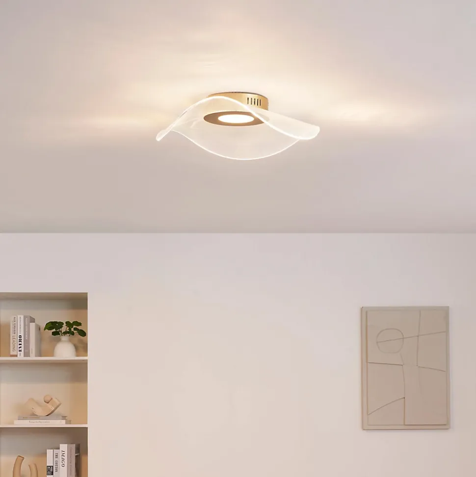Ondenis est un plafonnier au design aérien qui apporte une touche raffinée à votre espace. Sa structure en aluminium, acier inoxydable et acrylique assure robustesse et légèreté, tandis que la finition dorée et le diffuseur transparent ajoutent une touche subtile d’élégance. Avec un diamètre de 48 cm, il s’adapte facilement à tout environnement. Équipé de LED intégrées de 24W pour un éclairage de 1000 lumens, ce modèle non dimmable, conforme à la norme IP20, combine style moderne et efficacité.) Assemblage simple requis (