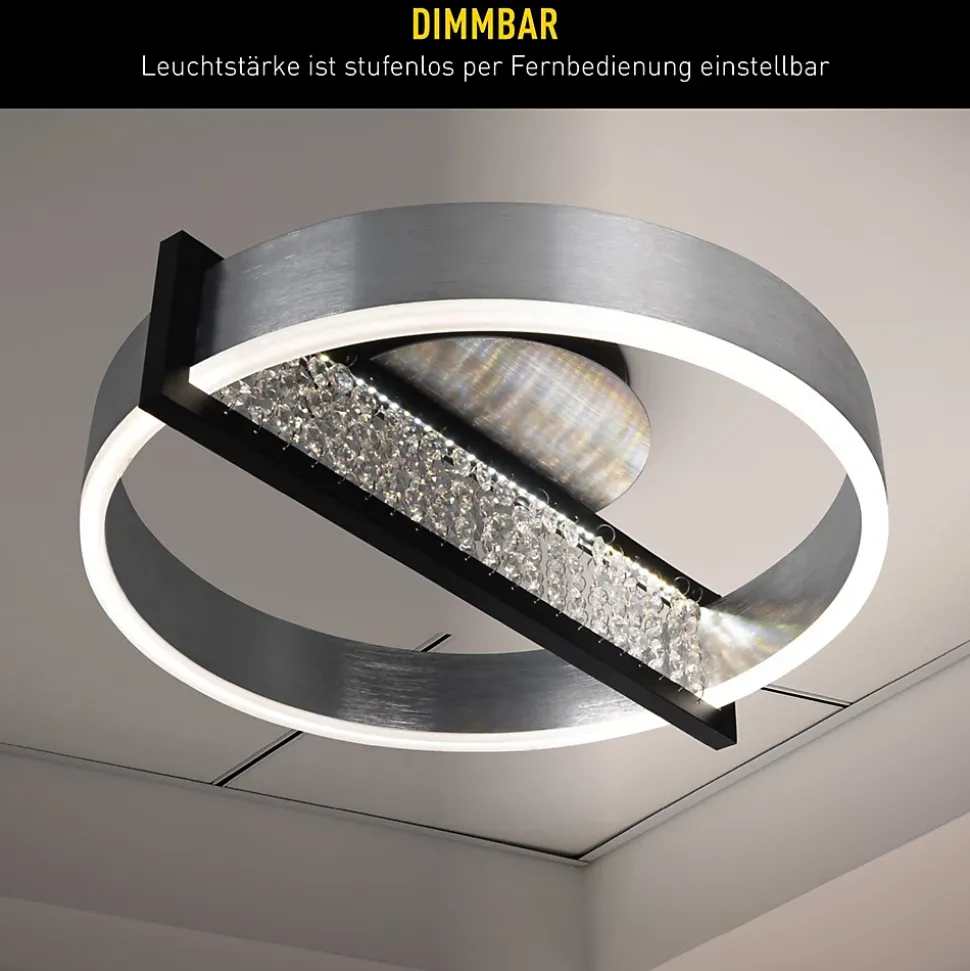 Le plafonnier YVARIS de notre collection attire tous les regards dans n’importe quelle pièce à vivre. Les plafonniers sont parfaits pour éclairer une pièce de manière homogène. Ils offrent une large diffusion de la lumière qui atteint tous les coins et créent ainsi une atmosphère lumineuse et accueillante. Style moderne, design symétrique et aspect exceptionnel, idéal pour tous ceux qui aiment l’originalité et l’élégance ! Le luminaire en aluminium, métal et plastique attire tous les regards dans n’importe quelle pièce. Le cadre recouvert s’harmonise avec l’abat-jour recouvert. Le plafonnier mesure 53,2 cm de long, 50 cm de large/profondeur et 13,7 cm de haut. Il est équipé d’une télécommande. Il vous offre une solution d’éclairage élégante pour vos pièces à vivre. Avec 1 carte LED équipée de 410 LED, la lumière vient éclairer l’obscurité. Et ce, de manière très attrayante. Le design séduit par son intégration complète de l’éclairage. Ce luminaire correspond à la classe 2. Pour le fonctionnement sur secteur de cet appareil, une tension secteur de 220-240 V ~ 50 Hz est nécessaire. Le luminaire de 30 watts a une intensité lumineuse de 1700 lumens et une température de couleur de 6500 kelvins. Ce luminaire vous permet de régler individuellement la luminosité et de créer ainsi la lumière adaptée à chaque situation. La fonction veilleuse produit une lumière douce et discrète qui permet de s’orienter dans l’obscurité et crée une atmosphère agréable. Cette fonction est idéale pour les chambres à coucher, les couloirs ou les chambres d’enfants et allie sécurité, confort et efficacité énergétique. Nos plafonniers de haute qualité créent une ambiance lumineuse optimale et apportent confort et style à chaque pièce de votre maison.
