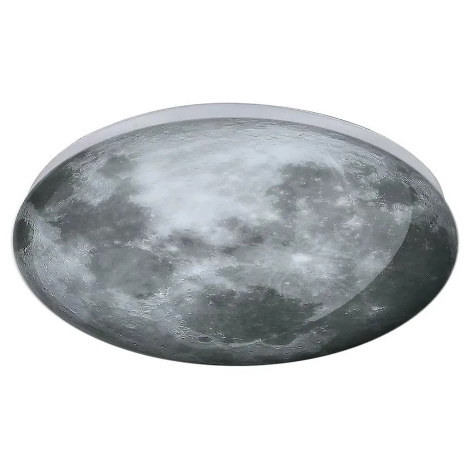 Plafonnier Luna à motif planète Le plafonnier Luna, avec son motif particulièrement tendance évoquant la lune, est idéal pour les intérieurs modernes des chambres d’enfants et d’adolescents. Le motif inspirant qui orne ce plafonnier nous transporte dans un voyage cosmique, où le mystère de l’espace se mêle au design contemporain. Ce plafonnier est fabriqué en acrylique multicolore de haute qualité. Il peut également servir d’applique murale, diffusant une lumière douce et chaleureuse. Il est équipé d’une LED intégrée à température de couleur neutre de 4000 K. Plafonnier Luna en détail Type de lampe : Plafonnier. Dimensions : Ce plafonnier possède un diamètre impressionnant de 38 cm, ce qui en fait à la fois un luminaire et un élément décoratif. Matériaux et couleurs : Le plafonnier Luna est fabriqué en acrylique gris de haute qualité. Source lumineuse : La lampe est équipée d’une LED intégrée avec une température de couleur neutre de 4 000 K. Plafonnier Luna avec motif planète Motif Le plafonnier Luna, orné d’un motif planétaire, allie à merveille fonctionnalité et esthétique. Il s’intègre parfaitement à tous les styles d’intérieur, du plus moderne aux chambres d’enfants et d’adolescents. Son design unique attire le regard et crée une ambiance fascinante. Le plafonnier Luna est un élément décoratif qui apporte du caractère à tout intérieur. La lumière qu’il diffuse est aussi unique que son design : délicate et tamisée, elle crée une atmosphère agréable et propice à la détente. Cette lumière stimule l’imagination et inspire la créativité, idéale pour les jeunes esprits. Dans une chambre, une chambre d’enfant ou une chambre d’adolescent, le plafonnier Tierra, orné d’un motif planétaire, apporte un charme unique. Il peut également servir d’applique murale, diffusant une lumière douce et intime. Ce sera un choix parfait pour une chambre d’enfant, où il pourra servir de veilleuse pour l’aider à s’endormir.