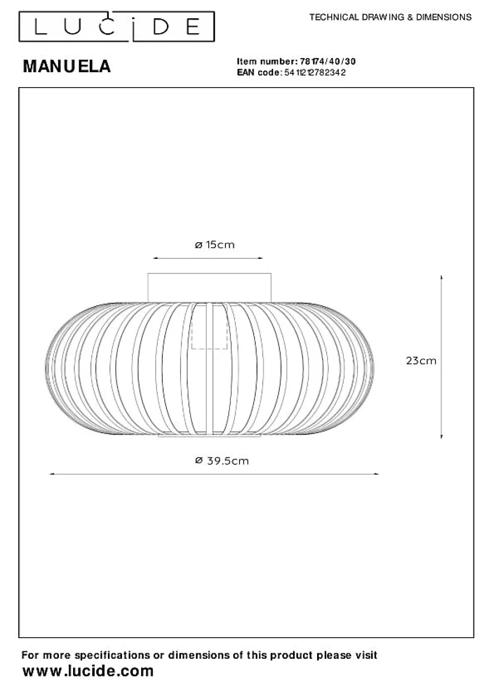Une ampoule emprisonnée dans une cage métallique. Le plafonier Manuela sait comment être utile. Une petite nouvelle dans la gamme de Lucide, mais immédiatement un grand succès. Avec les ampoules visibles, Manuela répond intelligemment aux tendances intérieures contemporaines. Le plafonier a tout pour faire de votre maison un foyer chaleureux. Placez ce plafonnier au-dessus de votre table à manger, de votre cuisine ou de votre table basse et profitez immédiatement d’une merveilleuse ambiance. Manuela est facile à connecter à un gradateur de lumière et elle est également très belle.Caractéristiques uniques:• Utilisable avec une source lumineuse LED• Facile à connecter à un variateur (non fourni)• Fabriqué en métalPrincipales caractéristiques du produit:• Consommation énergétique: 1x60W / 230V / A intensité variable (Ampoule non incluse)• Dimensions: Ø39,5 cm Haut.23 cm• 2 Ans garantie sur le luminaire / source de lumière appropriée est EAN: 5411212491046Pourquoi choisir l’éclairage Lucide?Lucide incarne un design innovant, un savoir-faire artisanal et une fiabilité exemplaire. En tant qu’entreprise familiale belge avec plus de trois décennies d’expertise, nous concevons des éclairages de haute qualité qui enrichissent et transforment chaque espace, tant intérieur qu’extérieur. Notre collection polyvalente comprend des luminaires durables et des sources lumineuses économes en énergie, soigneusement conçus par nos propres experts et fabriqués selon les normes CE les plus strictes. Grâce à notre large gamme, nous vous proposons toujours une solution d’éclairage adaptée, quel que soit le style ou l’espace. Ainsi, nous illuminons non seulement votre espace de vie mais aussi votre processus de choix dans la recherche d’un éclairage de qualité et abordable. Chez Lucide, nous combinons innovation et savoir-faire pour un éclairage qui ajoute non seulement de l’ambiance, mais transforme chaque mais…