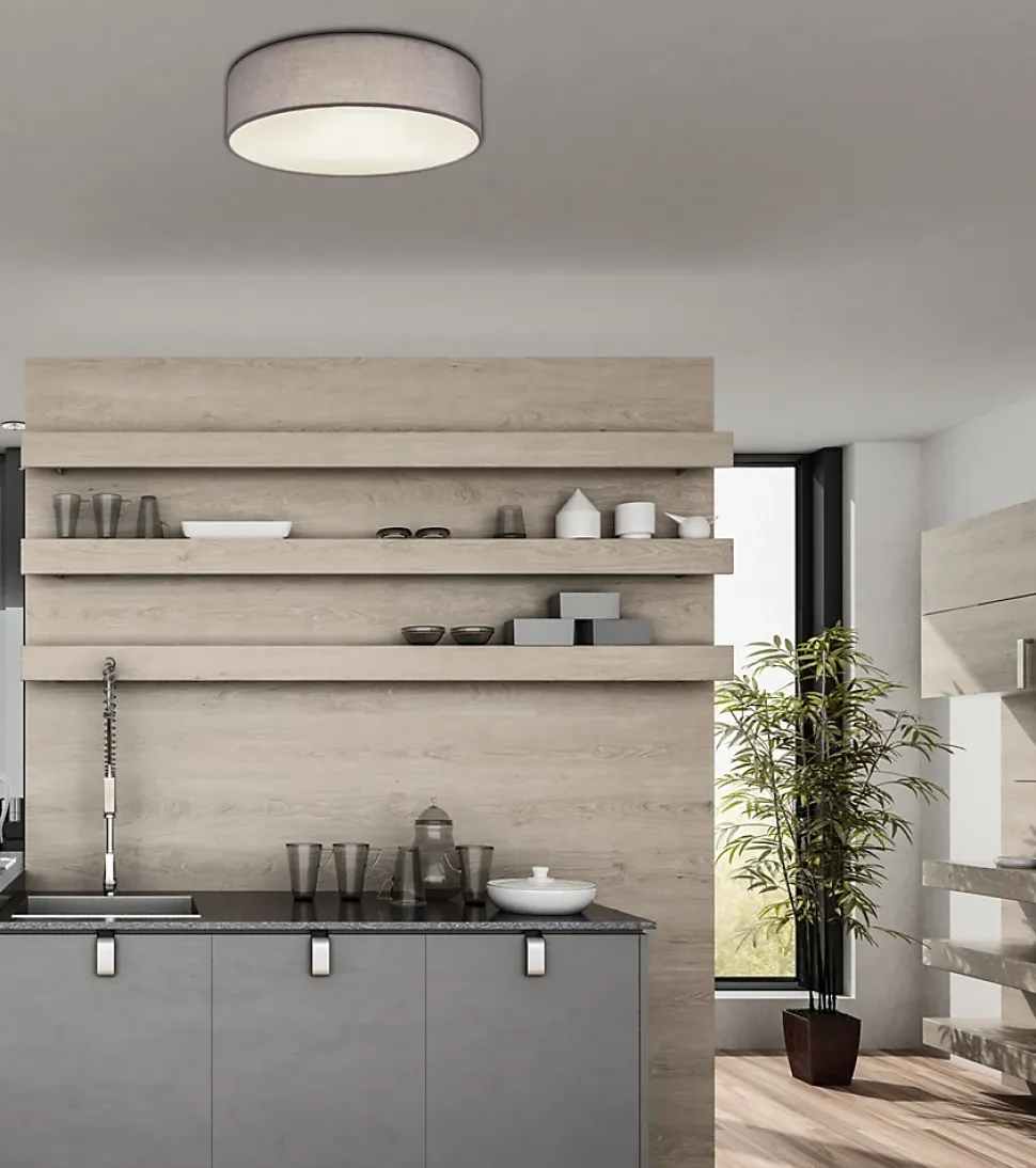 Ce plafonnier rond de la série Sanna (ø 40 cm) s’intègre à merveille dans l’ambiance des différents styles de vie. Il a un cadre textile de couleur anthracite (hauteur = 10 cm) qui entoure le plastique opale. Cela couvre les trois douilles E27, que vous pouvez équiper d’ampoules LED assorties de votre choix. Cela vous donne la possibilité de déterminer individuellement la couleur et la luminosité de la lumière. Avec d’autres modèles de la même série, vous pouvez définir des accents élégants dans vos intérieurs et compléter le tableau d’ensemble.