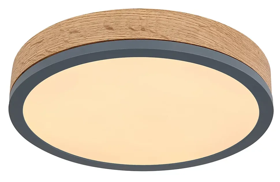 Plafonnier métal graphite, MDF décor bois foncé, plastique opale, ø: 300mm, H: 85mm, incl. LED 12W 230V, 1600lm Source, 950lm Output, 3000K