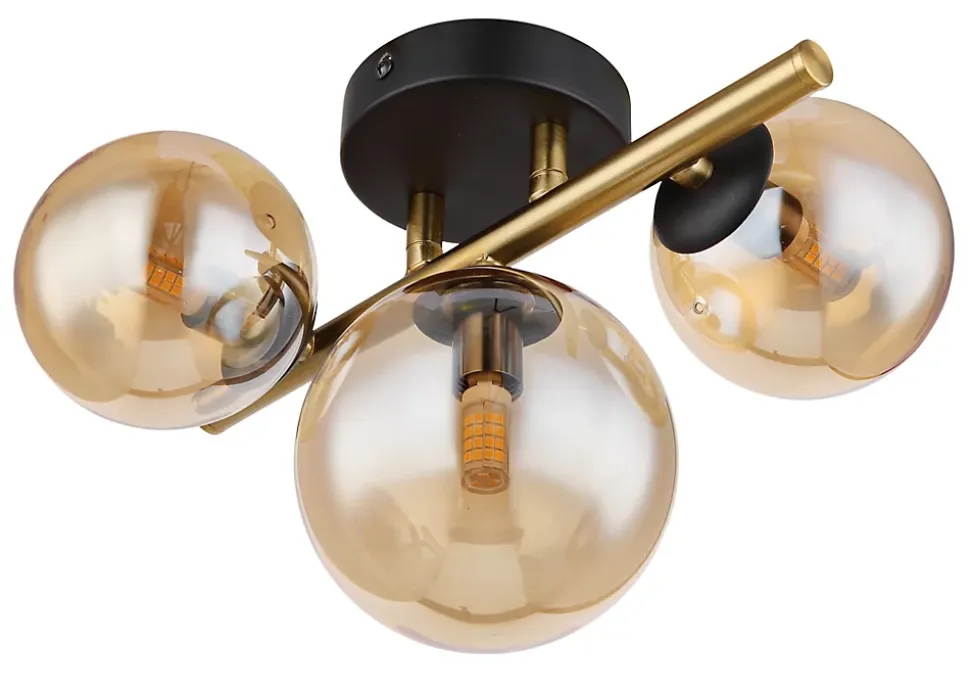 Plafonnier métal noir mat, métal laiton mat, verre ambre, LxPxH: 280x210x190mm, incl. 3x G9 LED 3.5W 230V, 350lm Source, 80lm Output, 3000K, inkl. LED Leuchtmittel 10676