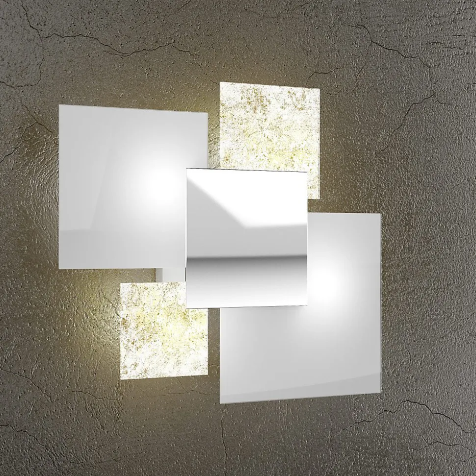 Plafonnier ou applique moderne avec verre blanc et feuille d’or tandis que la plaque centrale est chromée.Collection SHADOW d’appliques ou plafonniers avec structure en métal peint en blanc et plaque frontale en acier poli. Les diffuseurs sont en verre plat extra-clair disponible en différentes finitions.La collection est complétée par une lampe de table en métal chromé et verre blanc et feuille d’or.Plafonnier idéal pour une installation au plafond ou au mur. Les environnements où il trouve les plus grandes applications sont les maisons modernes, les salons ou les chambres. Très élégant et moderne.Cette applique, grâce à son design élégant et moderne, s’installe également dans les bureaux, les commerces ou les showrooms.Ce plafonnier est IP20, donc utilisable en intérieur uniquement. 4 ampoules G9 requises, non incluses. Matériel : Structure en métal peint en blanc, plaque frontale en acier poli et vitre en différentes finitions.Alimentation 230 V CA. Lustre de plafond ou mural. Dimensions : 46x42x15cm.Marque d’éclairage haut de gamme.Code de produit 1088/45-FO
