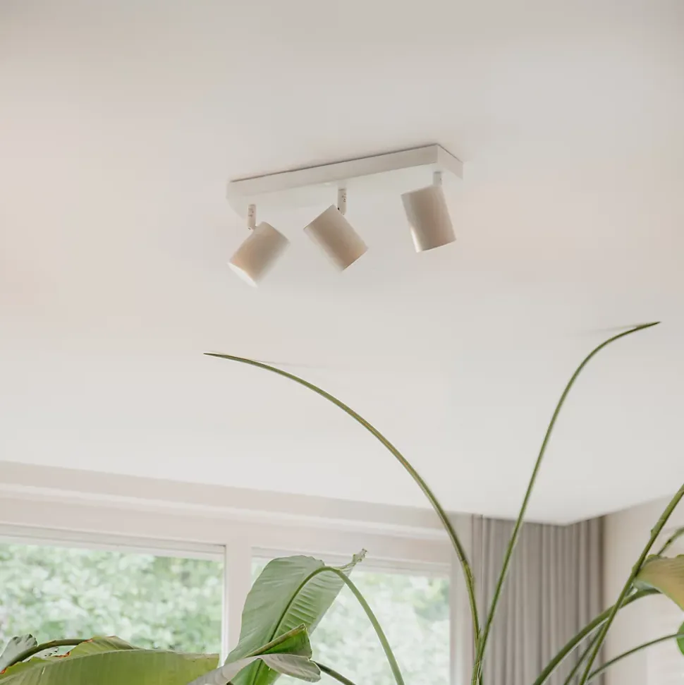 Moins, c’est plus. Jeana le prouve une fois de plus. Ce plafonnier simple est très moderne grâce à son design épuré. Il est fait d’acier et fini en blanc. Jeana a une hauteur de 13 cm, une longueur de 35 cm et une largeur de 8 cm. La plaque de montage a une hauteur de 2,5 cm, une longueur de 35 cm et une largeur de 8 cm. Les abat-jour ont chacun un diamètre de 5,7 cm et une hauteur de 8 cm. Vous pouvez compléter le plafonnier avec 3 sources lumineuses, chacune avec un culot GU10 (max. 10 Watt). N’oubliez pas de les commander séparément. Jeana est dimmable avec un variateur externe (non inclus). Complétez votre intérieur avec le plafonnier Jeana.
