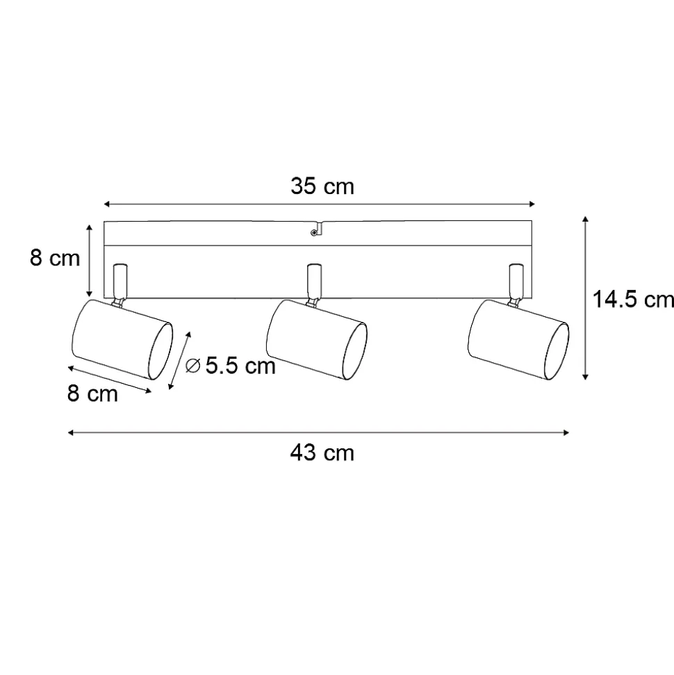 Moins, c’est plus. Jeana le prouve une fois de plus. Ce plafonnier simple est très moderne grâce à son design épuré. Il est en acier et fini en noir. Jeana a une hauteur de 14,5 cm, une longueur de 43 cm et une largeur de 8 cm. La plaque de montage a une hauteur de 2,5 cm, une longueur de 35 cm et une largeur de 8 cm. Les abat-jour ont chacun un diamètre de 5,5 cm et une hauteur de 8 cm. Vous pouvez compléter le plafonnier avec 3 sources lumineuses, chacune avec un culot GU10 (max. 10 Watt). N’oubliez pas de les commander séparément. Jeana est dimmable avec un variateur externe (non inclus). Complétez votre intérieur avec le plafonnier Jeana.