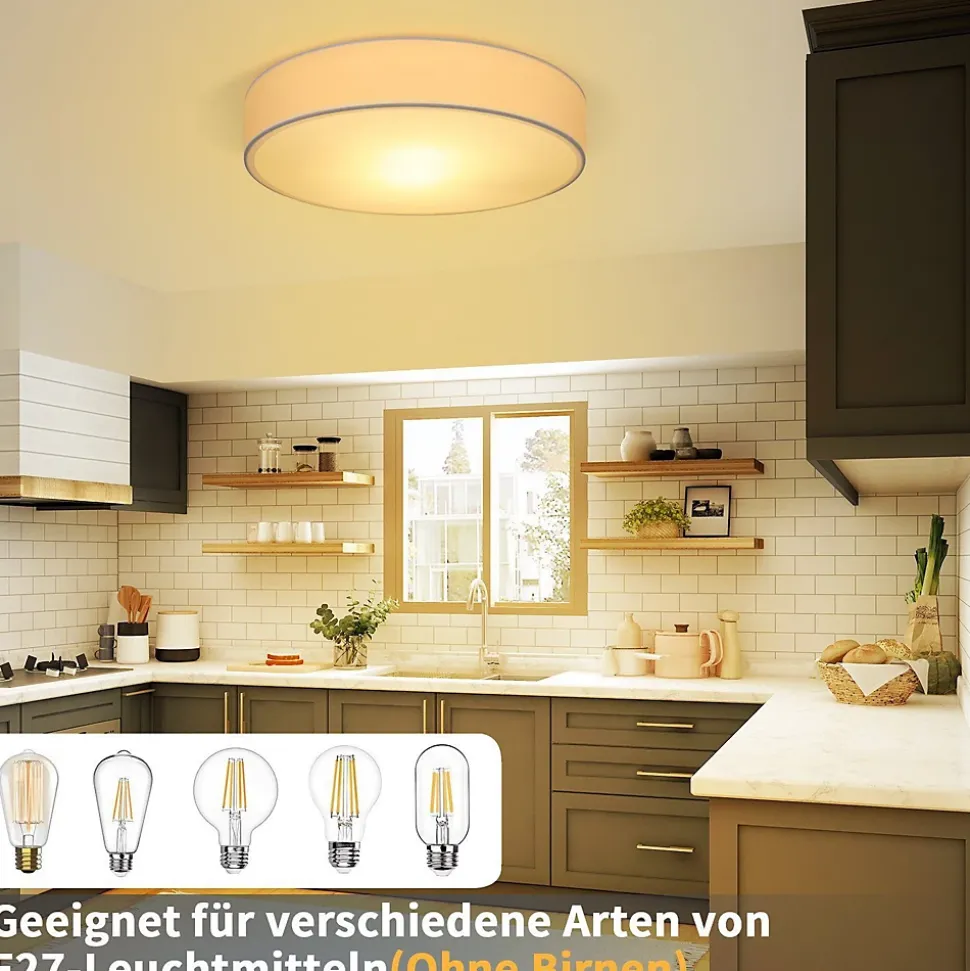 Moderne et élégant : l’abat-jour en tissu s’intègre parfaitement dans un design intérieur simple et moderne, ce qui donne à votre pièce une atmosphère agréable et ajoute une touche d’éternité et d’élégance. Associez ce plafonnier en tissu pour rendre votre pièce harmonieuse ! S’adapte à n’importe quel style de décoration pour n’importe quelle pièce.Installation facile : pas besoin d’installer des câbles complexes. En quelques étapes simples, vous pouvez terminer l’installation. Très approprié pour un usage domestique. Après avoir installé le plafonnier, la distance entre celui-ci et le plafond est relativement étroite, de sorte qu’il n’attire pas l’attention des moustiques et que l’on obtient ainsi un répulsif contre les moustiques et autres insectes.Facile à utiliser : vous pouvez changer les ampoules E27 selon vos besoins pour obtenir différents effets. Très approprié pour le salon, la chambre, le couloir, la salle à manger, le bureau, etc. (source lumineuse non incluse)Styles polyvalents : il existe différentes couleurs et tailles que vous pouvez choisir en fonction du style de décoration intérieure pour obtenir différents effets de pièce.Service client : Tous nos produits sont disponibles avec une garantie de 2 ans. Si vous avez des questions, n’hésitez pas à nous contacter