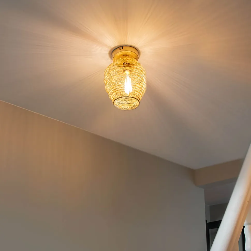 Notre Nidum Bene est une lampe qui donnera à votre intérieur une ambiance orientale ! Elle est finie avec des fils métalliques dorés, ce qui permet à l’ampoule d’être clairement visible. Elle crée un bel effet au plafond. Il est donc préférable de choisir une ampoule décorative ! Elle doit avoir un culot E27 (25W maximum). Ce plafonnier sera du plus bel effet dans le salon ou dans le couloir. Votre chambre à coucher aura également une touche orientale avec ce Nidum. L’abat-jour a un diamètre de 20 cm, le plafonnier une hauteur de 22 cm. La plaque de montage pour le plafond a un diamètre de 12 cm. La luminosité de la lampe peut également être atténuée à l’aide d’un variateur externe. Complétez votre intérieur avec ce plafonnier oriental ! Le Nidum est fait à la main, la forme de l’abat-jour peut donc différer de celle de la photo ! À noter : cette lampe est livrée dans une petite boîte, vous devrez donc retirer l’abat-jour vous-même. Et ensuite : assemblez-la et profitez-en !