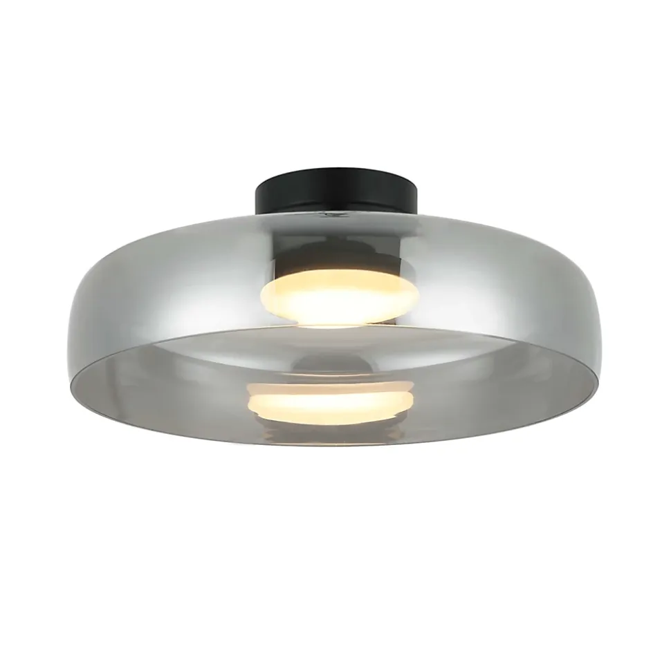 Riccardo est un plafonnier qui allie modernité et élégance, doté d’un design en verre fumé et métal noir. Mesurant 42 cm de diamètre, il offre une lumière douce grâce à sa LED intégrée de 15W, créant une ambiance chaleureuse. Ce luminaire est parfait pour apporter une touche raffinée à votre intérieur et convient parfaitement pour éclairer un salon ou une chambre avec style. Explorez la collection Riccardo ici.) Assemblage simple requis (