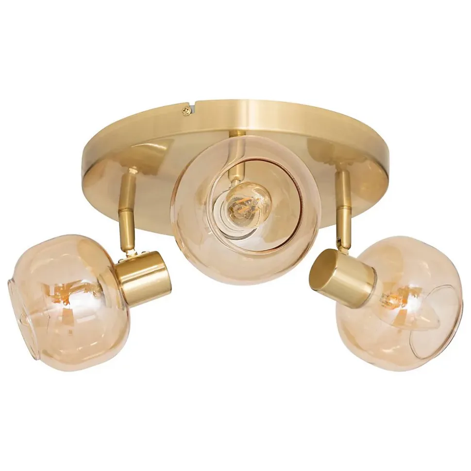 Fonctionnel et épuré, le plafonnier métal Pilia Atmosphera créera une ambiance chaleureuse dans une pièce et mettra votre déco en valeur.Le plafonnier métal Pilia Atmosphera est composé d’une base cylindrique en acier teinté effet laiton, sur laquelle sont fixés 3 spots orientables. Dotés d’abat-jours globes en verre, ces spots peuvent être équipés des ampoules de votre choix. Pour parfaire ce plafonnier avec goût, préférez des ampoules à filaments qui produiront un effet élégant grâce aux reflets du verre. Installez ce plafonnier dans une pièce de vie au-dessus d’une table à manger ou d’un coin salon et orientez les spots en fonction de votre configuration afin de personnaliser votre éclairage. Effet déco garanti !Abat-jours en verreBase en acierSpots orientablesDOUIlle E14Nombre d’ampoules : 3Puissance maximale : 25 wattsAmpoule non incluseComment déballer le plafonnier métal Pilia ? Lors de l’ouverture de votre colis, veillez à ne pas enfoncer une lame trop profondément pour éviter d’endommager le produit. Retirez les éléments de protection et d’emballage avec précaution, sans utiliser d’outils tranchants.Comment monter le plafonnier métal Pilia ?Avant de commencer le montage, protégez votre surface de travail pour éviter tout dommage.Nombre de personnes nécessaires pour le montage : 1Temps de montage : 60 min.Suivez attentivement les instructions de la notice incluse dans l’emballage.Conservez l’emballage et la notice quelques jours en cas de retour ou de démontage.Consultez les consignes de tri de votre commune pour recycler correctement votre emballage.Comment entretenir le plafonnier métal Pilia ?Dépoussiérez délicatement votre plafonnier avec un chiffon doux.Dimensions produit : D.25 x H.16 cm<p class= »poids
